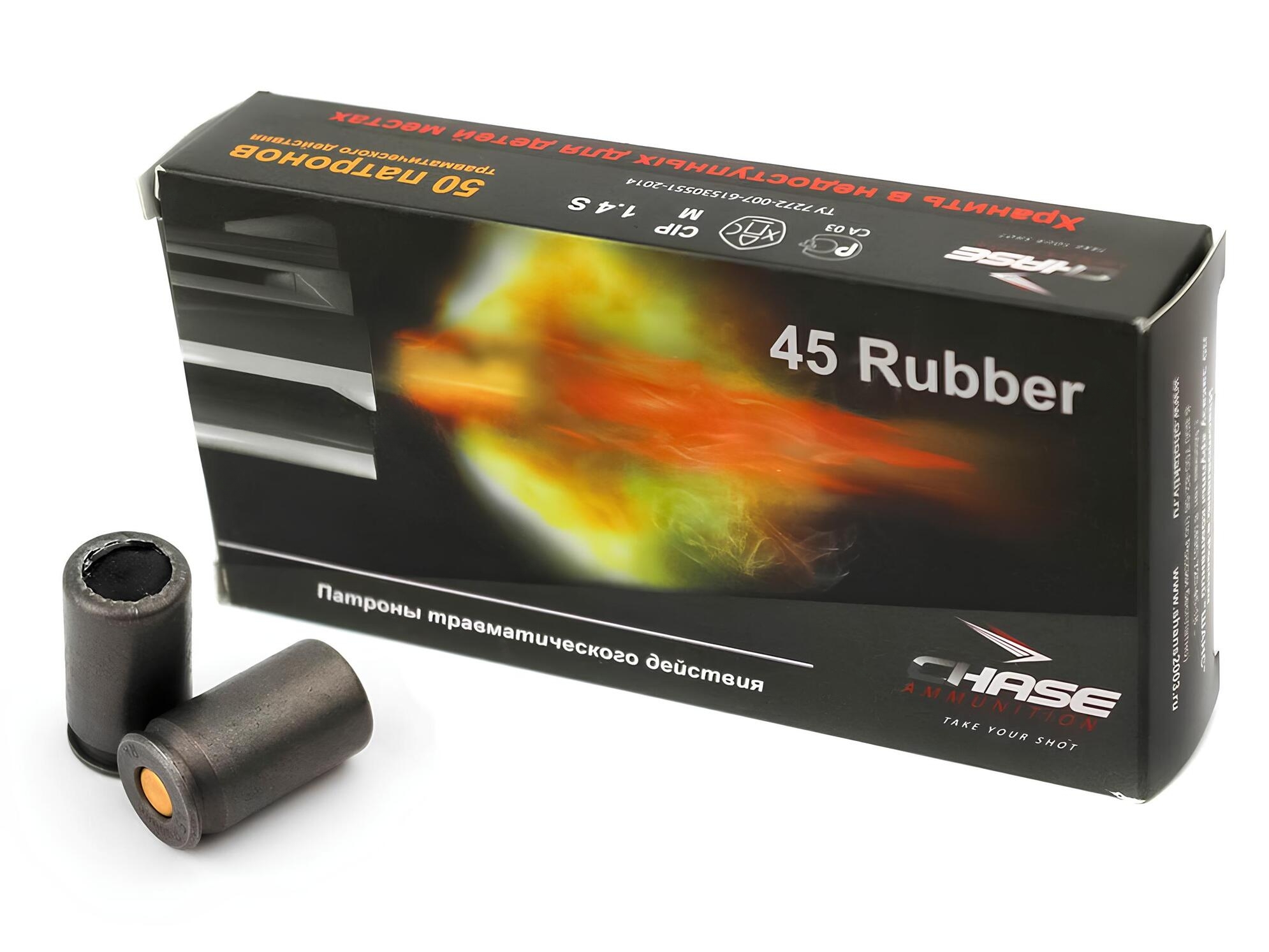 45 Rubber — весьма удачный калибр, отличающийся хорошим сочетанием массы и скорости пули и обладающий выраженным останавливающим действием. Патроны от разных производителей схожи между собой и все неплохо подходят для самообороны. Единственное существенное нарекание вызывает подача боеприпаса: отношение длины патрона к диаметру. Также особенности завальцовки иногда приводят к утыканиям патрона.