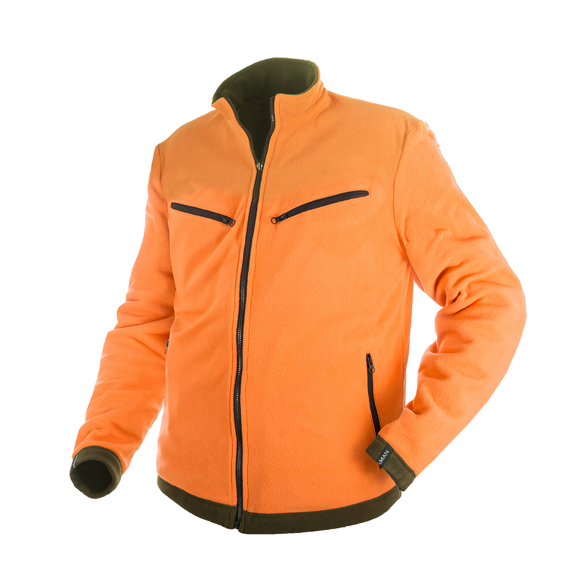 Эта лёгкая двусторонняя флисовая куртка обладает антипиллинговым и гипоаллергенным покрытием, а также водоотталкивающей пропиткой. Она сочетает в себе классические оттенки оливкового с оранжевым, что обеспечивает дополнительную безопасность.