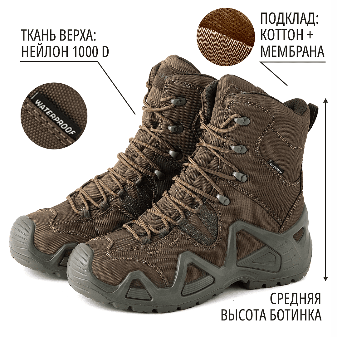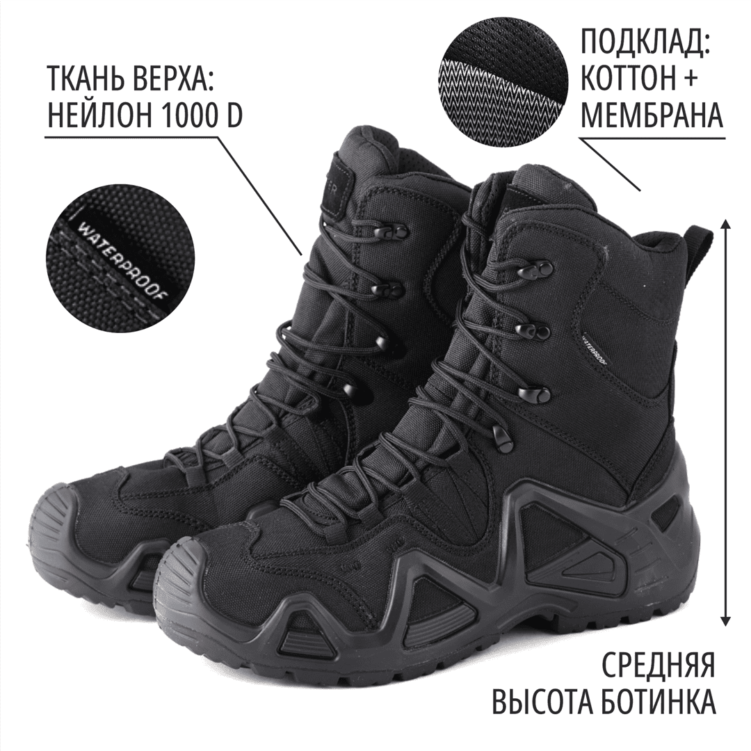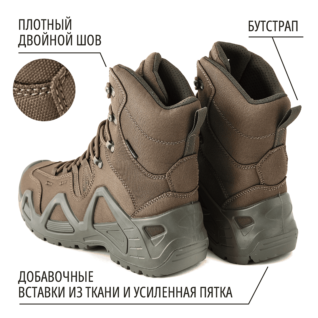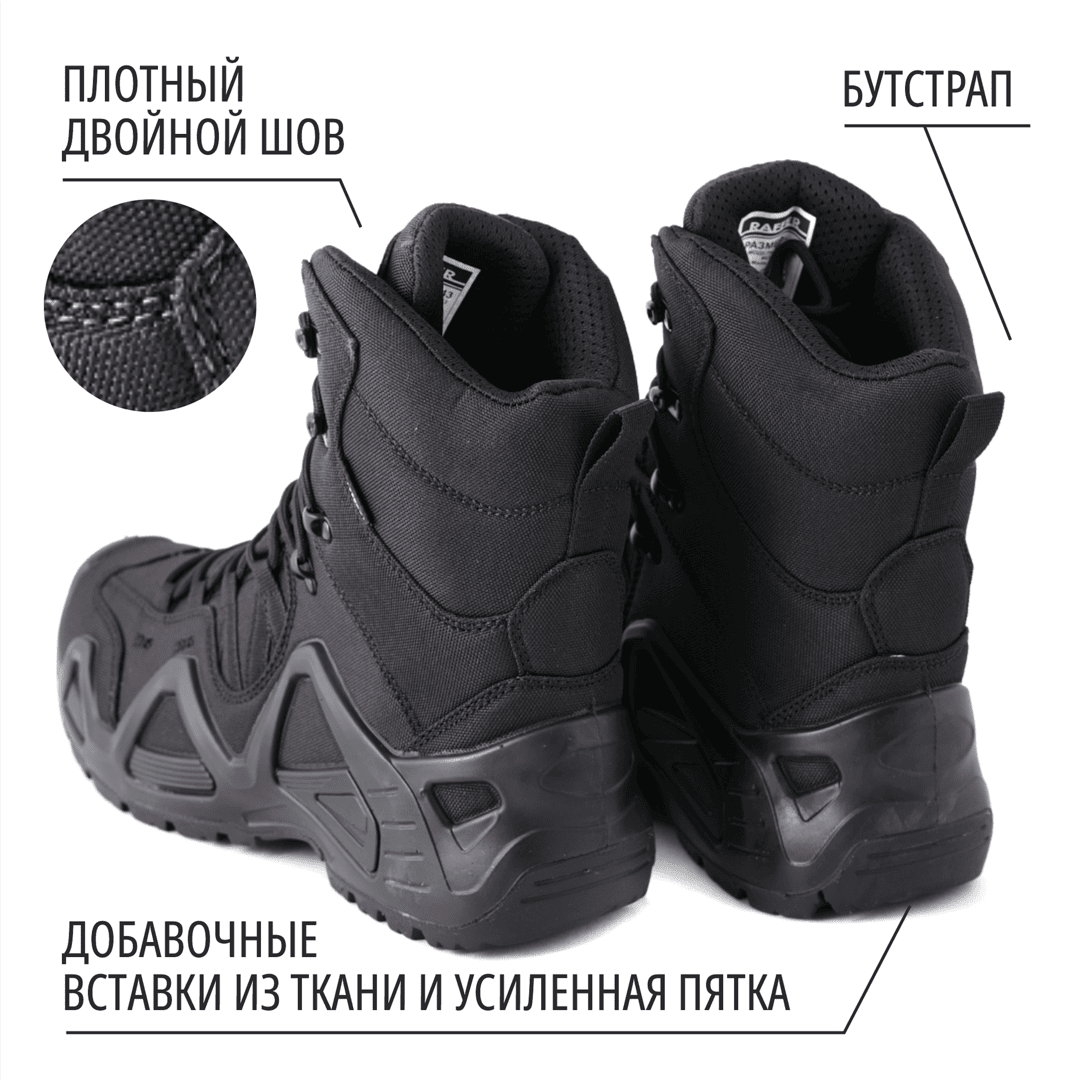 - Высокие берцы надежно фиксируют ногу и предохраняют лодыжку от вывихов и ушибов.