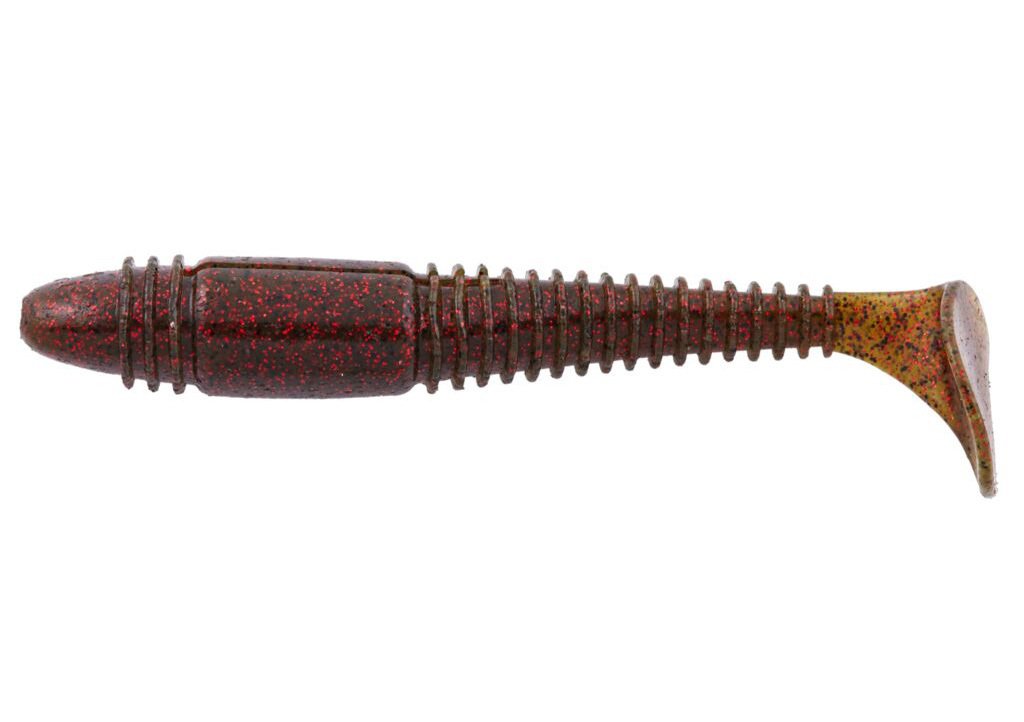Гибридная приманка имеет червеобразное тело с характерным утолщением в передней части и небольшой хвостик-копытце от виброхвоста. За счет "мясистого" тела, приманку можно применять без передней огрузки в сильно заросшем водоеме.