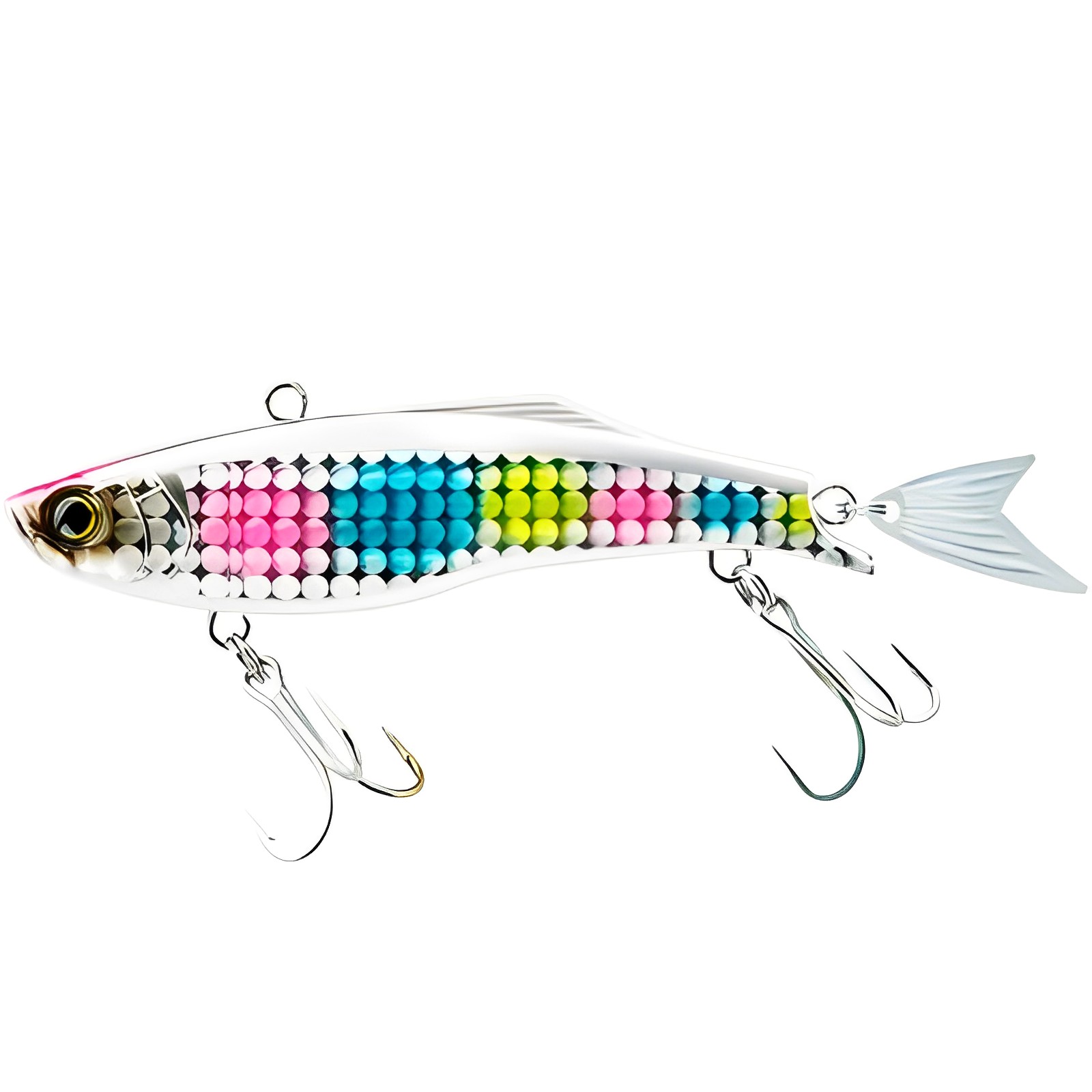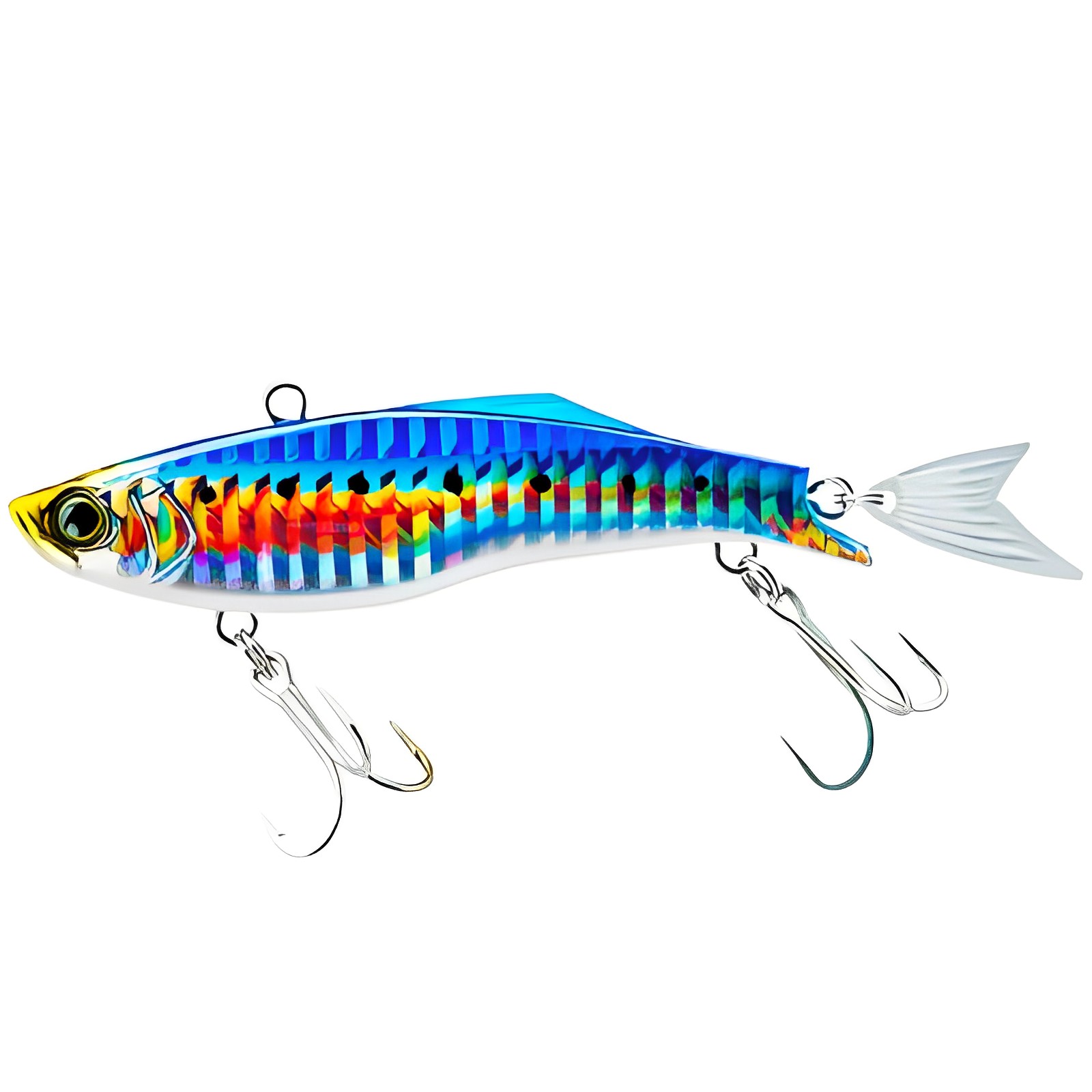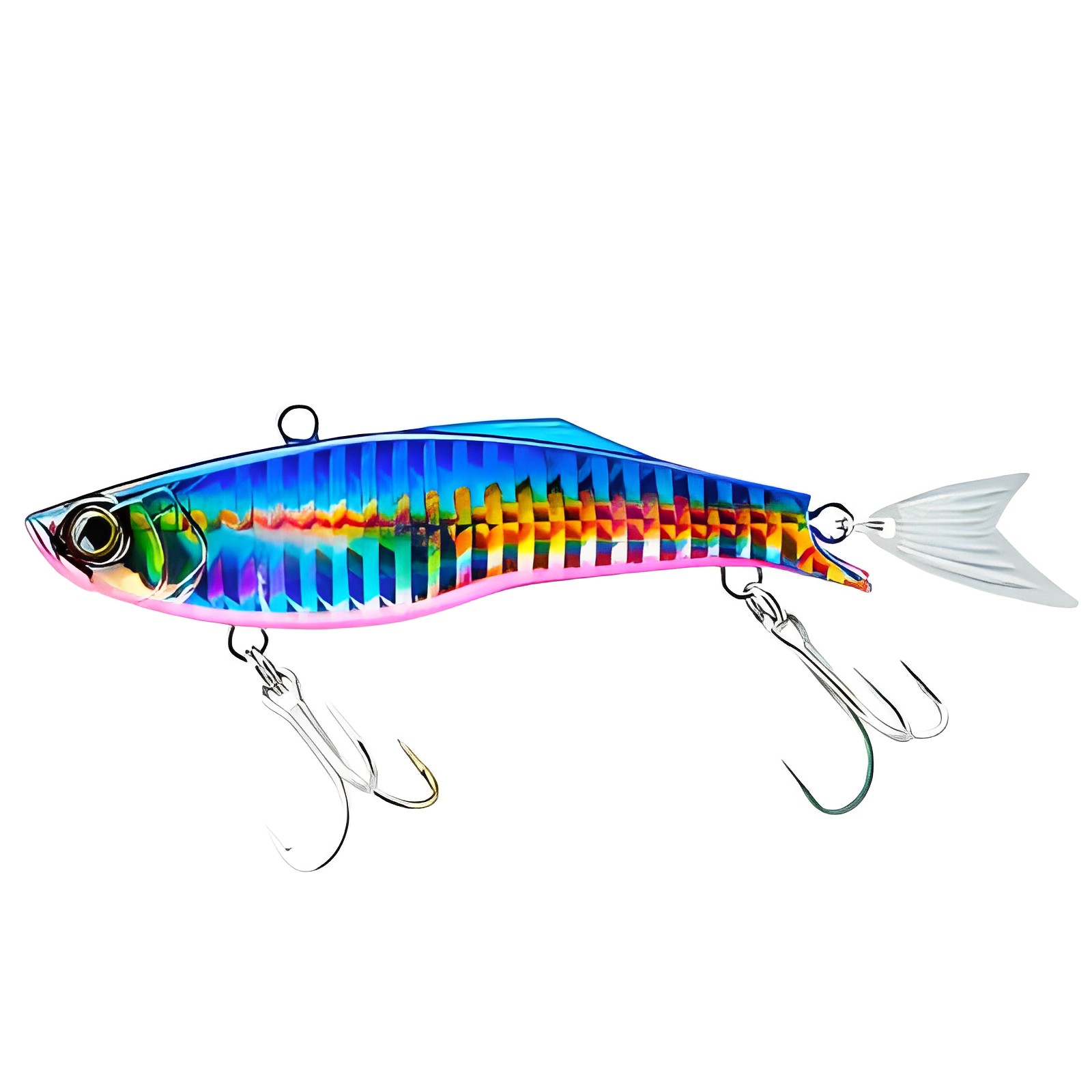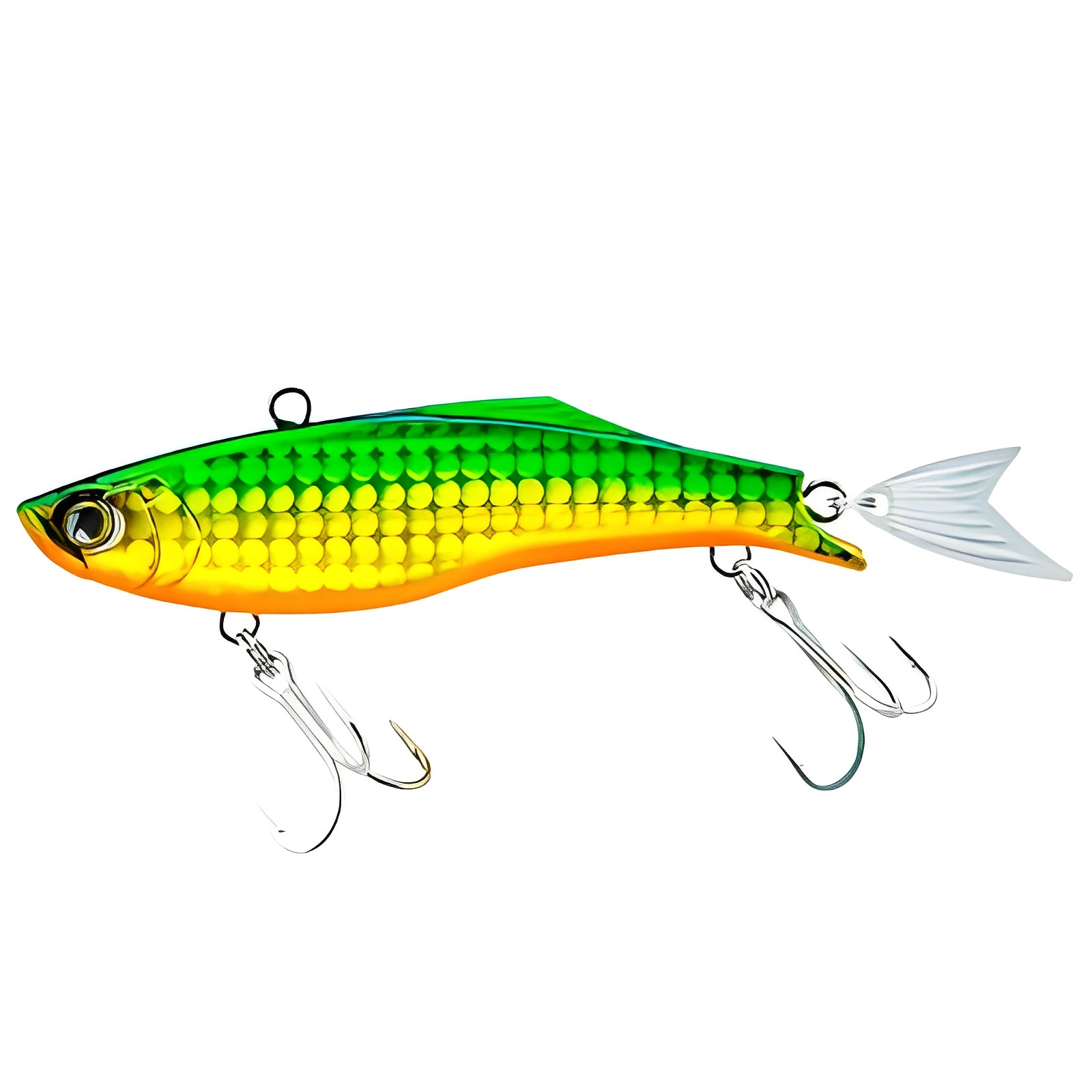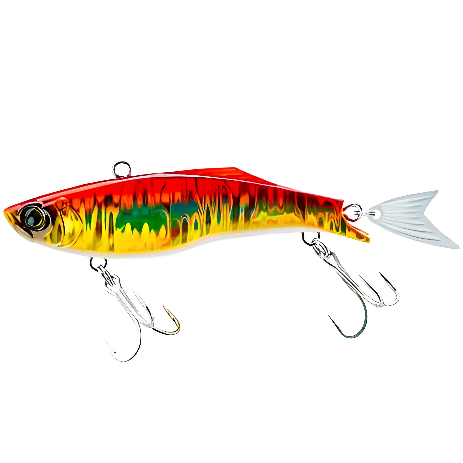 Воблеры Duel Hardcore Fintail Vibe, от известного японского производителя Duel/Yo-Zuri, надежно отработают облов участков на крупных водохранилищах, и рек с сильным течением. Пользуются большой популярностью за высокую уловистость, и крепкую конструкцию, выдерживающую многократные атаки зубастых хищников. Раттлин просто напичкан современными системами повышающими эффективность приманки. В их число входят, шумовая камера с системой Super Sound Vibration, магнитная система, для дальнего заброса и конечно яркая окраска, способная своей игрой соблазнить любого хищника. Для надежного удержания уже пойманной добычи, воблер оснащен двумя прочными тройниками. Ступенчатая проводка, с легким касанием дна, по мнению знатоков, наилучший вариант для Hardcore Fintail Vibe.