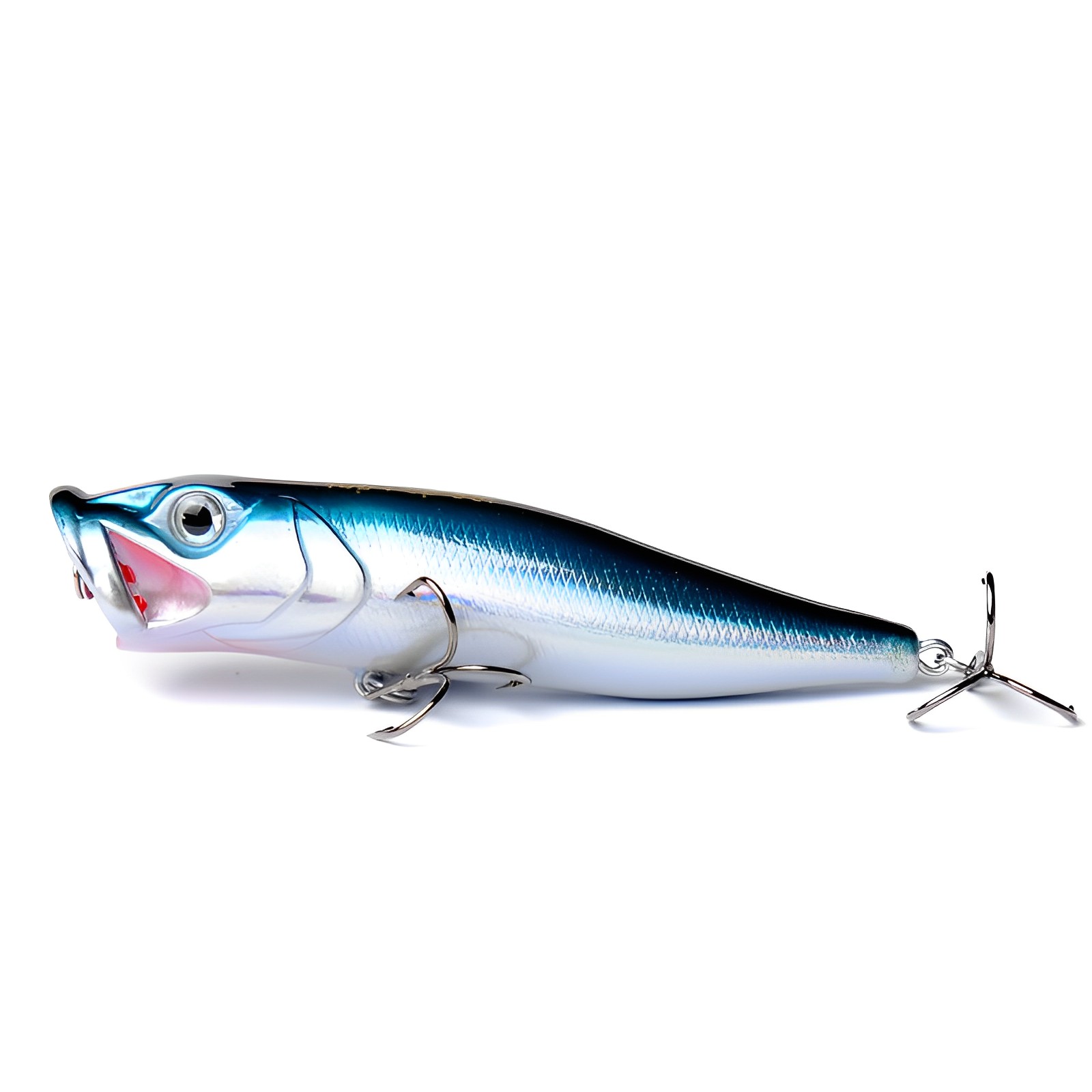 Воблер RAFFER Top Pop - это высококачественный и эффективный искусственный приманка для ловли рыбы. Он изготовлен из прочного пластика и оснащен высококачественными тройниками, что гарантирует его долговечность и надежность в использовании.