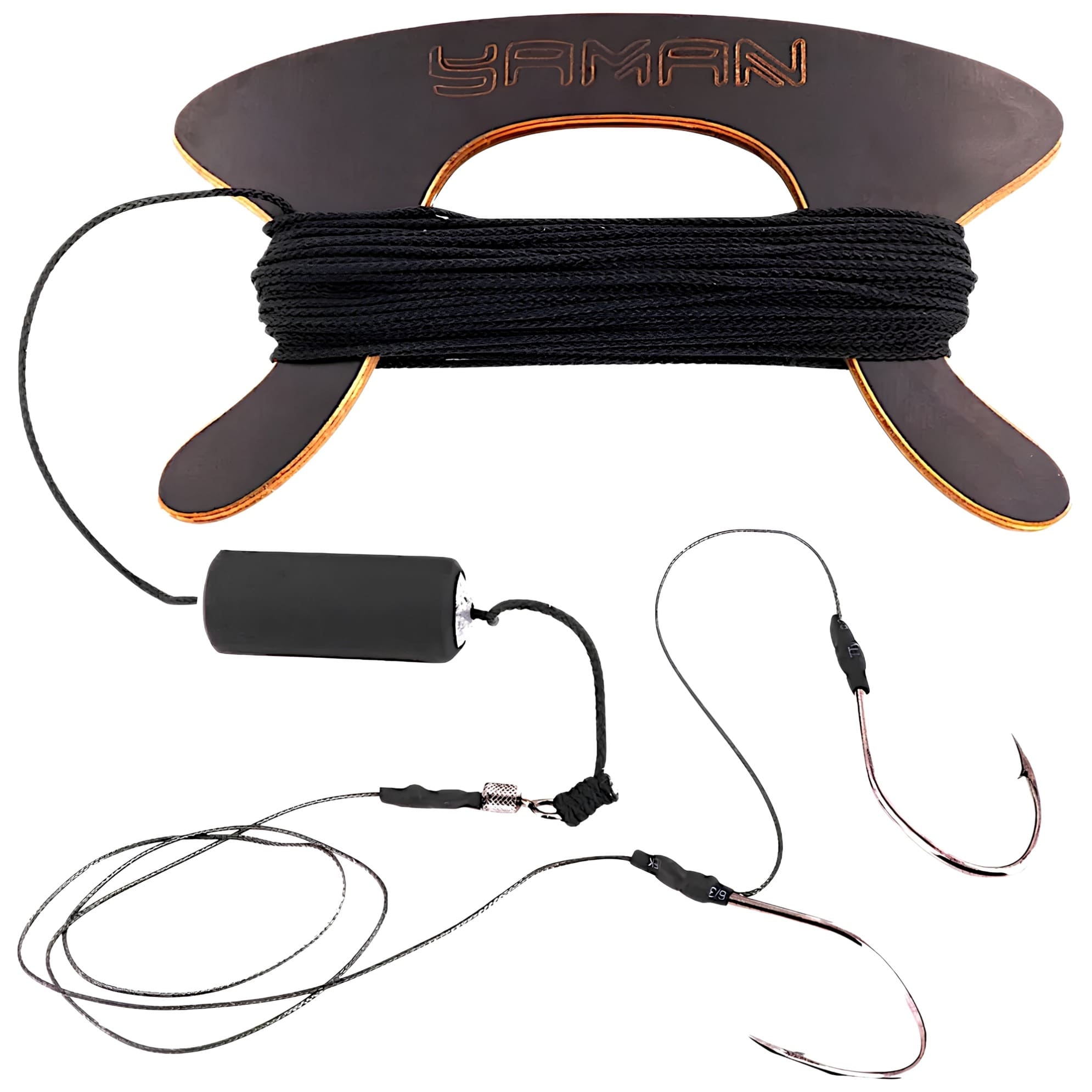 Оснастка готовая для ловли сома Yaman шнур 25 м, груз 300 гр, крючки №8, на мотовиле