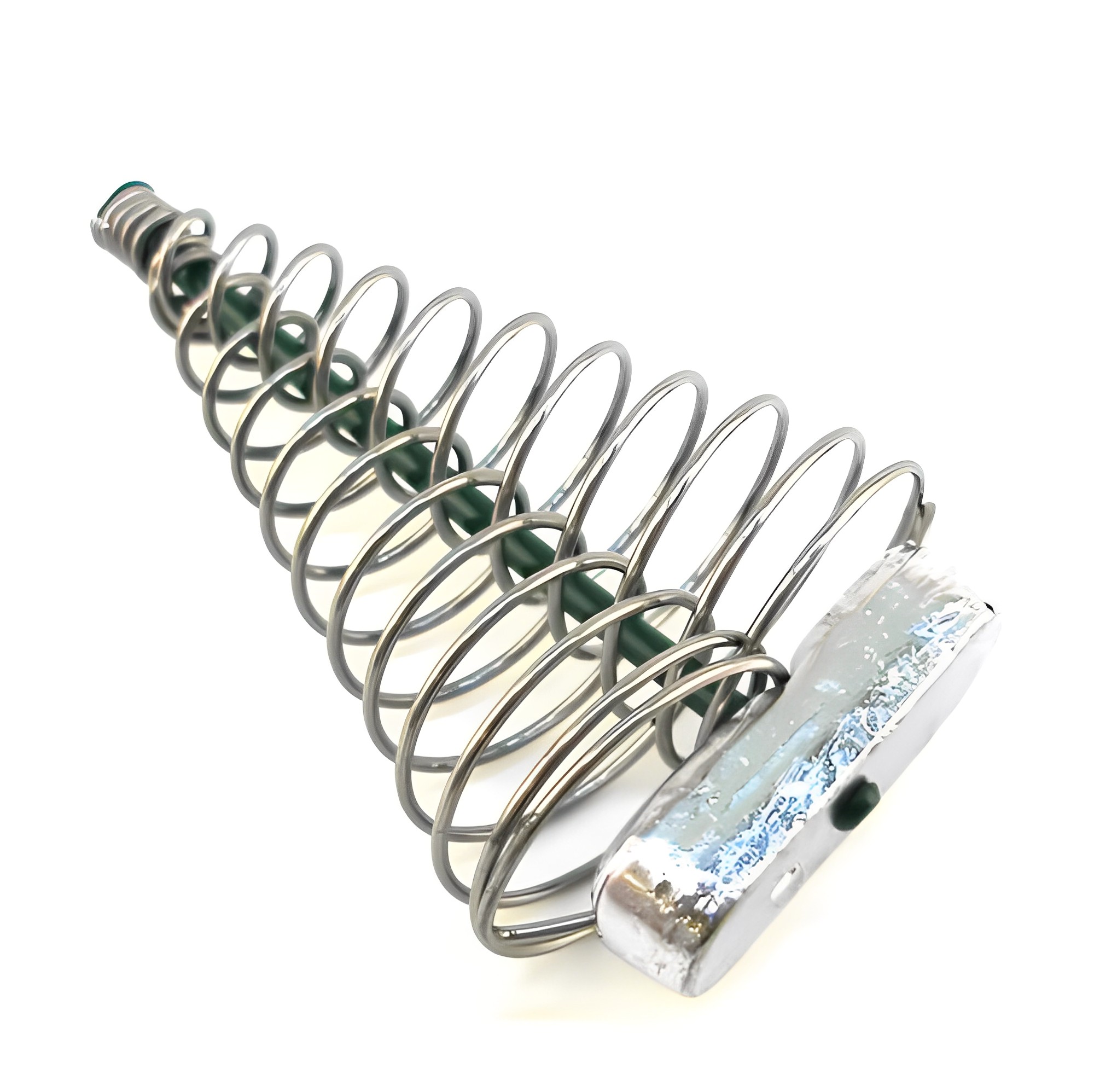 Фидерная кормушка плоская отгруженная "Дубль". Кормушка представляет собой две соединенные конусные пружины на конце которых располагается плоское грузило. Кормушка подходит для использования ее для ловли на реке, где присутствует течение, так же может использоваться и при ловле на водоемах со стоячей водой.