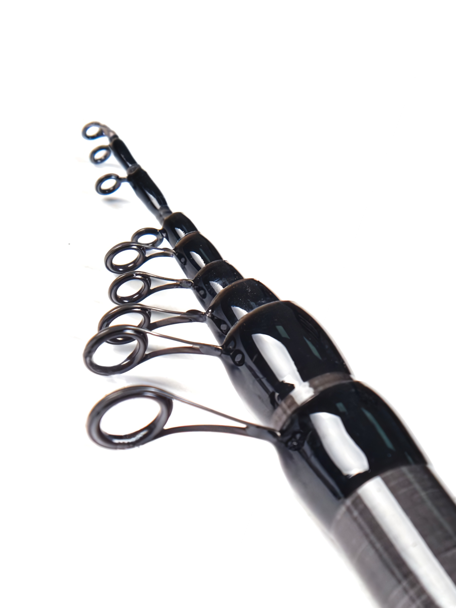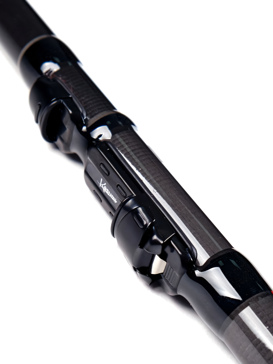 Удилища изготовлены из углепластика высокой модульности, обладают оптимальной упругостью и средним строем. Удилище оснащено классическими пропускными кольцами из нержавеющей стали со вставками из карбида кремний SiC. Катушкодержатель клипсовый.