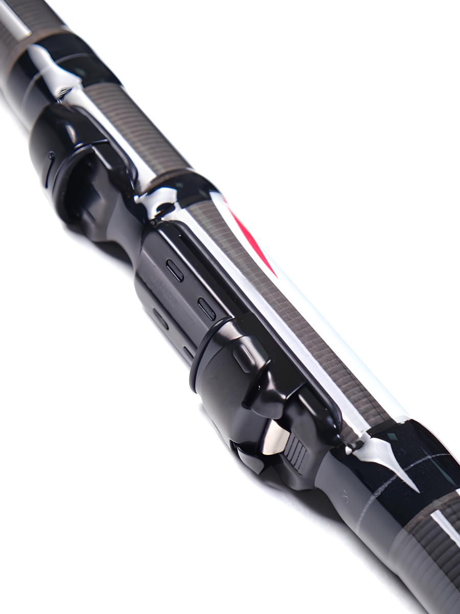 Удилища оснащены пропускными кольцами со вставкой из нержавеющей стали с покрытием нитрида титана. Такие кольца позволяют использовать тончайшие лески для деликатной поплавочной оснастки. На удилищах установлен клипсовый катушкодержатель.