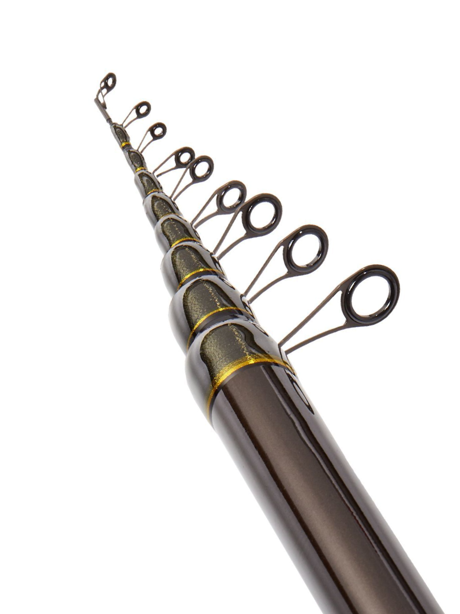 Удилище изготовлено из углеволокна IM7 и имеет средний строй. Конструкция телескопическая, что обеспечивает удобство в транспортировке и хранении. Катушкодержатель быстродействующего типа CLIP UP. Пропускные кольца облегчённые, со вставками SIC, что уменьшает трение и способствует более лёгкой и точной заброске.
