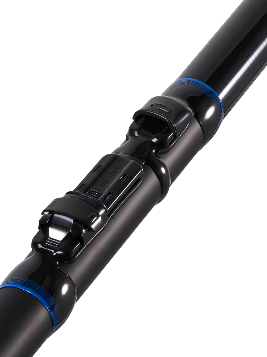 Удилище изготовлено из углеволокна T30 и имеет сверхбыстрый строй EF. Конструкция телескопическая, что обеспечивает удобство в транспортировке и хранении. Комель имеет противоскользящее покрытие, а катушкодержатель быстродействующего типа CLIP UP. Пропускные кольца облегчённые, со вставками SIC, что уменьшает трение и способствует более лёгкой и точной заброске.