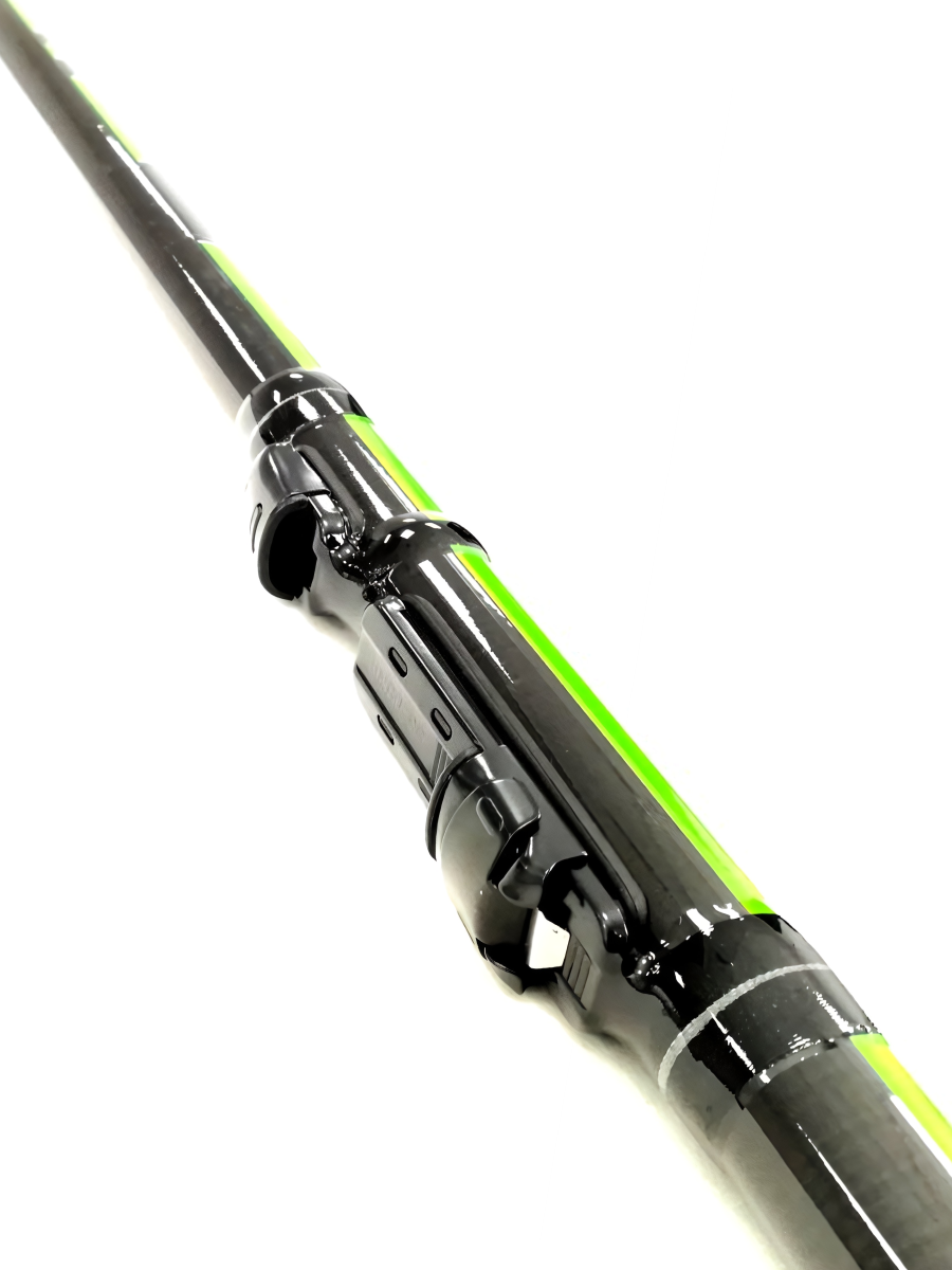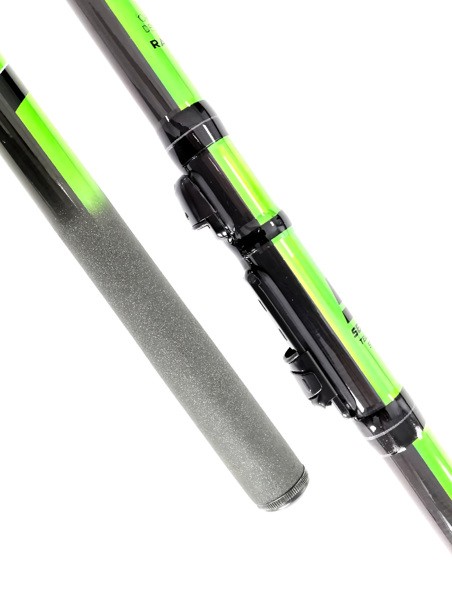 Болонское удилище Raffer Thunder. Материал, из которого изготовлено удилище, это графит повышенной прочности, из него производится основная часть удилища, а именно секции. Кончик выполнен из чистого графита и придает всей конструкции легкость и высокую чувствительность. Сделано это в первую очередь с целью улучшить реализацию поклевок и придать удилищу дополнительную гибкость, которая ценится среди любителей поплавочной ловли. Длина удилищ варьируется от четырех до шести метров, позволяет использовать снасть, как в прибрежных местах водоемов, так и для ловли на дальних дистанциях.