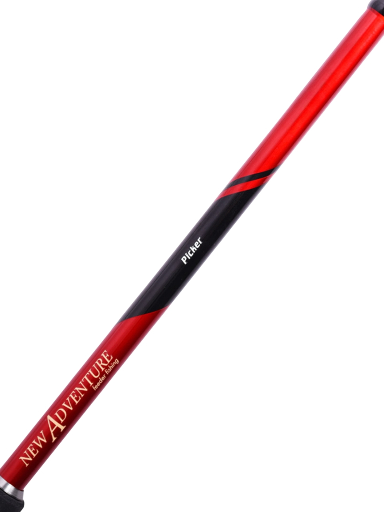 Удилище New Adventure (Feeder) оснащено сплошной эргономичной рукояткой из неопрена (EVA). Версия (Piсker) выполнена с разнесенной рукоятью.