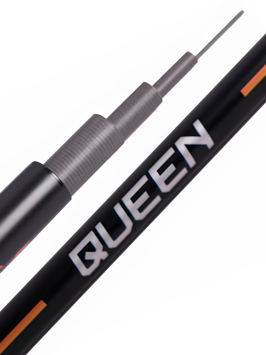 Queen – серия премиальных удочек, продолжающая линейку новинок сезона 2025 года. Эти современные, легкие и чувствительные поплавочные удилища быстрого строя (Fast-Action) включают маховые модели Pole (без колец) и болонские Bolognese (с кольцами). Удочки Queen изготовлены из высокомодульного графита HME, что снижает их вес и повышает чувствительность. Обычно длинные удочки, особенно 6 и 7 метров, вызывают дискомфорт и утомляют, но Queen легко держать в руках весь день.