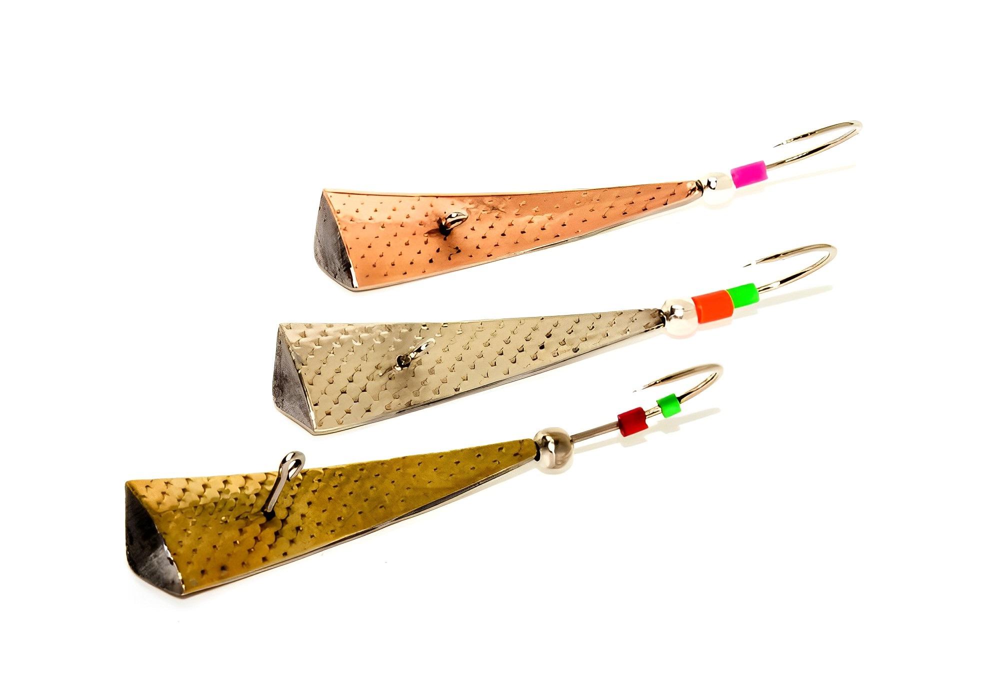 •  Средние — эти мормышки выплавляются из олова или вырезаются из цветного листового металла, например, латуни, с наплавлением свинца. Они подходят для ловли на небольшой глубине и могут быть легко изготовлены своими руками.