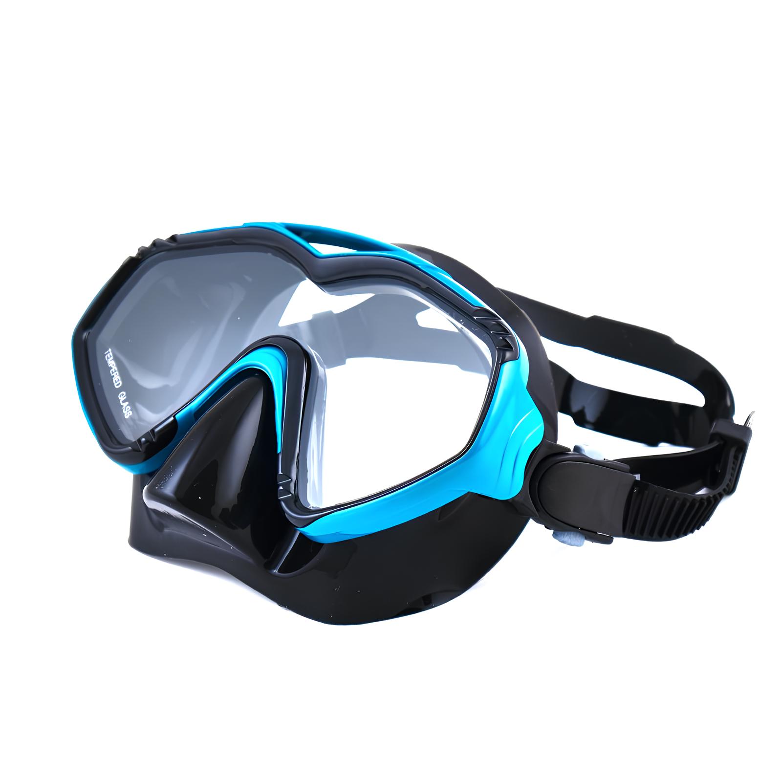 • Маски с боковыми линзами - оснащены двумя дополнительными стеклами, расположенными по бокам. Эти линзы пропускают больше света в маску, увеличивая поле зрения дайвера. Однако стоит отметить, что такие маски обычно имеют больший внутренний объем (удерживают больше воздуха), чем другие стили, что требует больше воздуха для их выравнивания и очистки от воды.