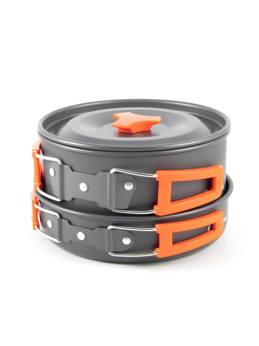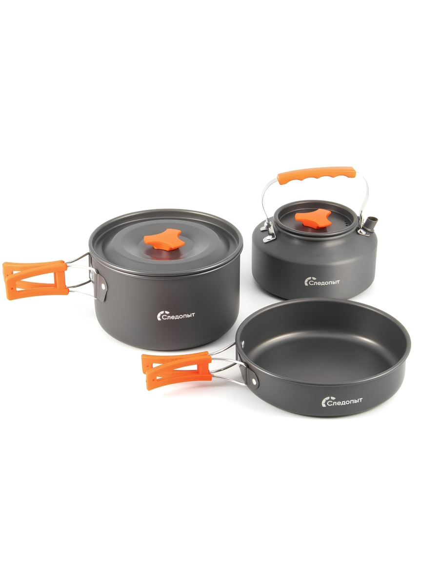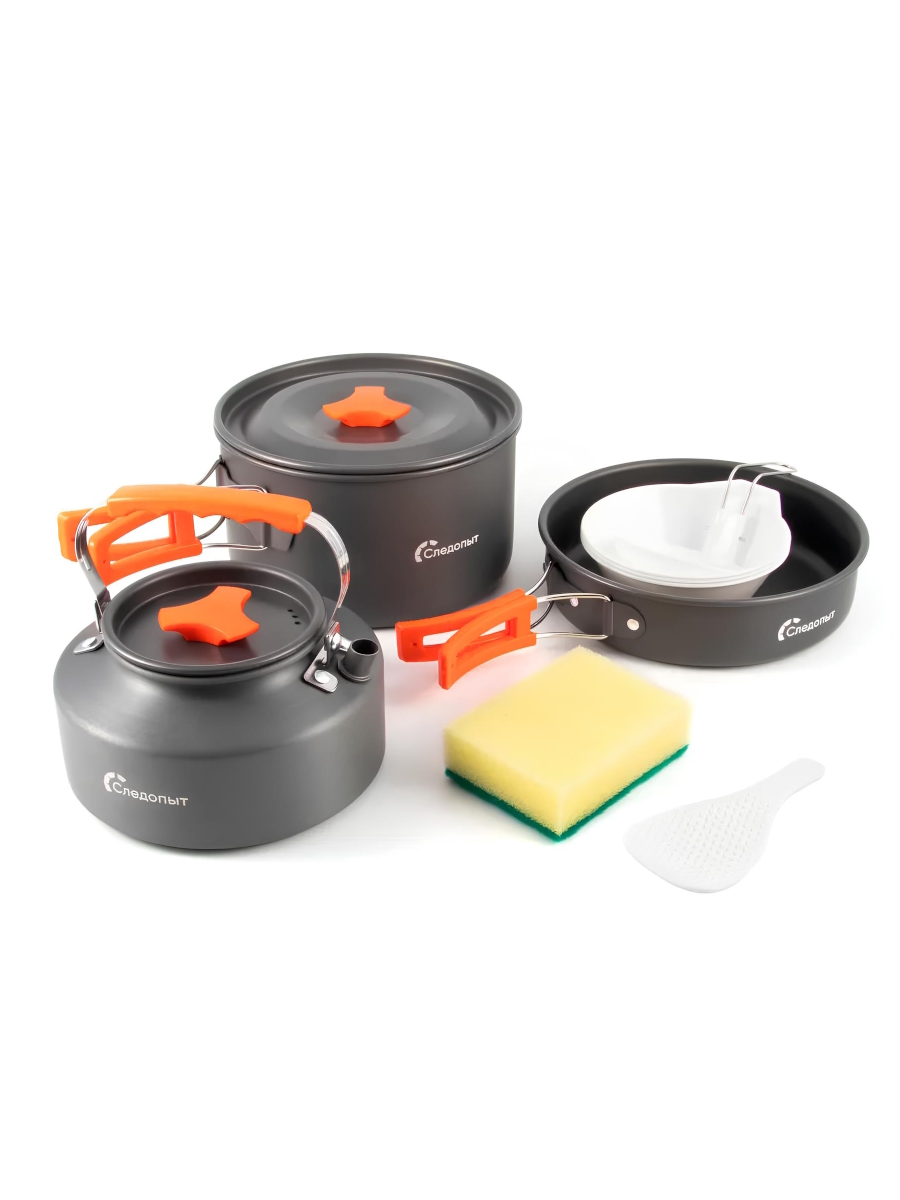 Комплект посуды отличается компактными размерами и небольшим весом, что делает его идеальным спутником для путешествий. Он рассчитан на 2-3 человека.