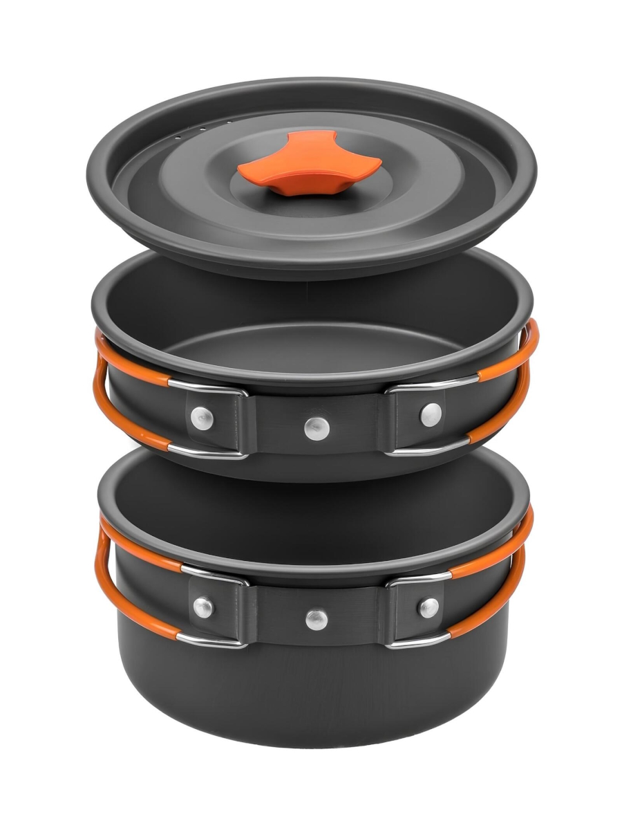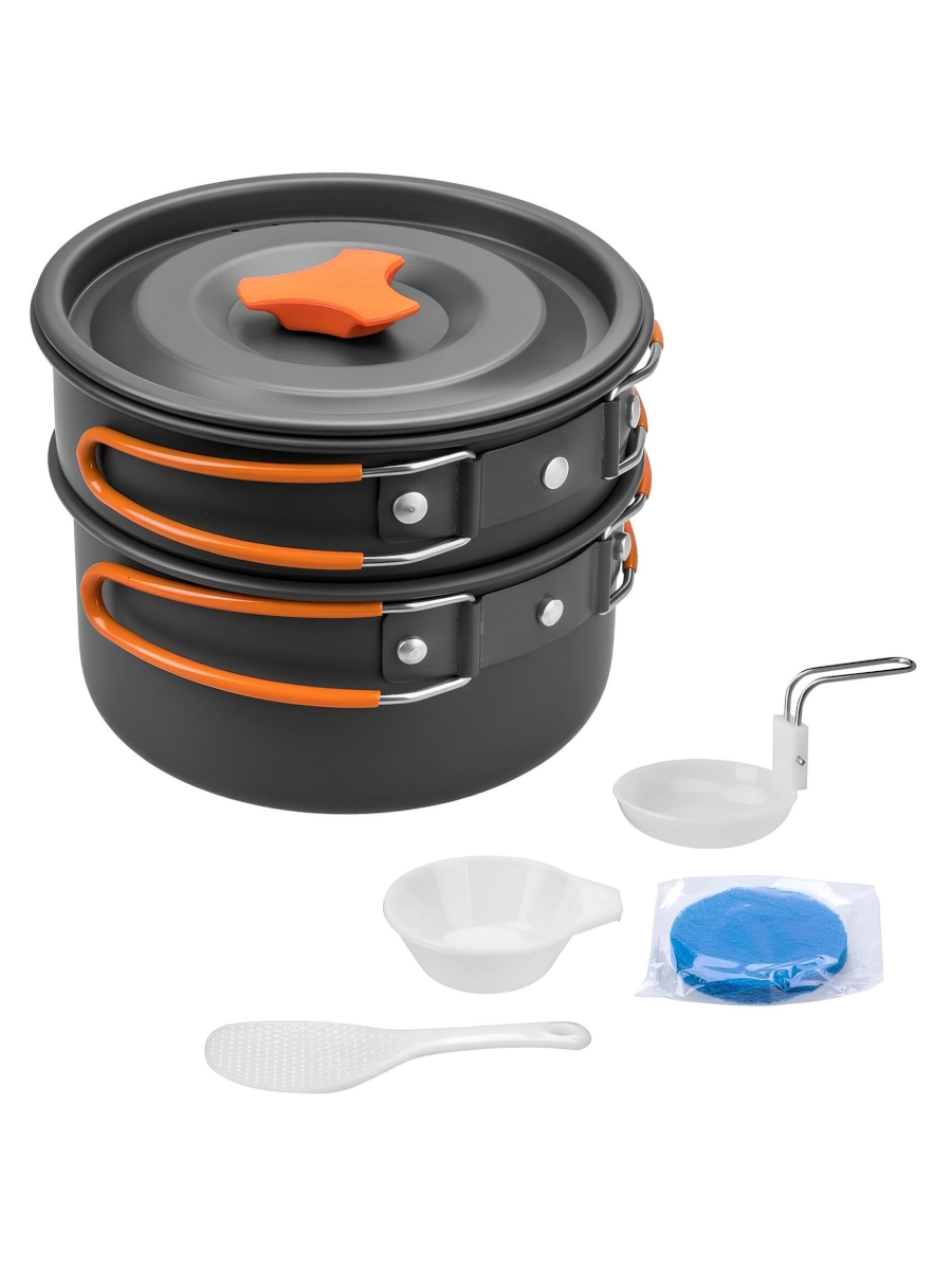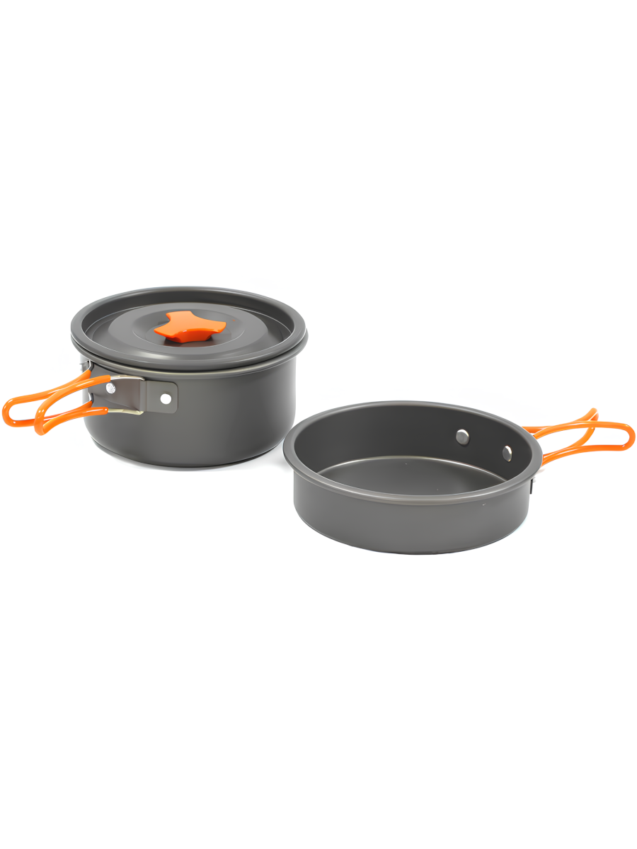 Набор рассчитан на 2-3 человека. Имеет откидные ручки с термоизолирующим покрытием, которые экономят объем при транспортировке, делая использование посуды более комфортным. Набор поставляется с нейлоновым мешочком для транспортировки и хранения.