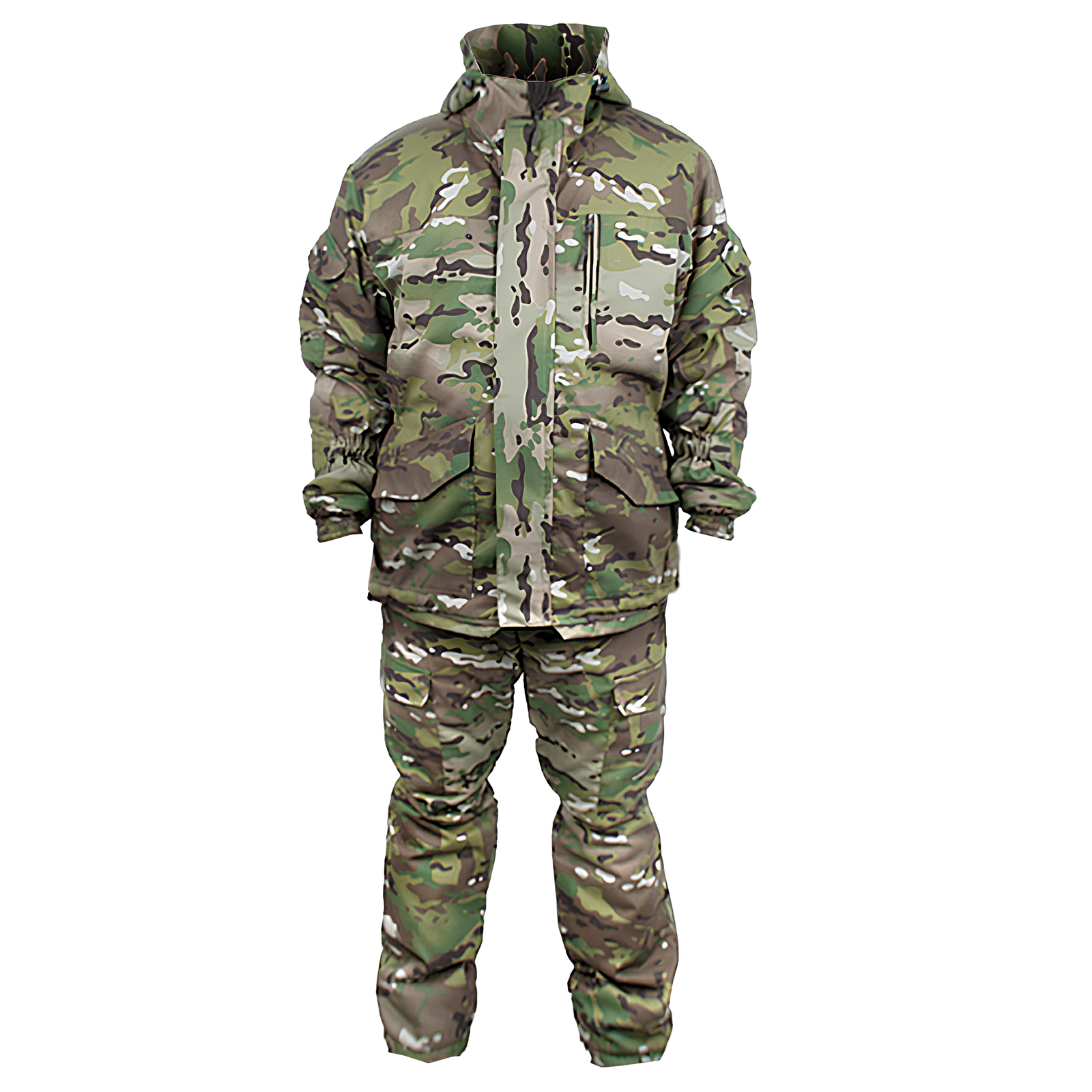 Куртка имеет свободный крой, оснащена центральной застёжкой на молнию и липучку, а также кокеткой, отделкой и усилениями из основной ткани. Два нижних накладных кармана с клапанами на липучке и один верхний карман на молнии обеспечивают удобство в использовании. На рукавах расположены по одному наклонному карману с клапаном на липучке, а в области локтя имеются усиливающие фигурные накладки. На предплечье имеется утягивающая резинка, которая дополнительно фиксирует одежду. Низ рукавов также оформлен резинкой для лучшей посадки. Двойной капюшон с флисовой отделкой и утягивающей кулисой позволяет регулировать объём по желанию.