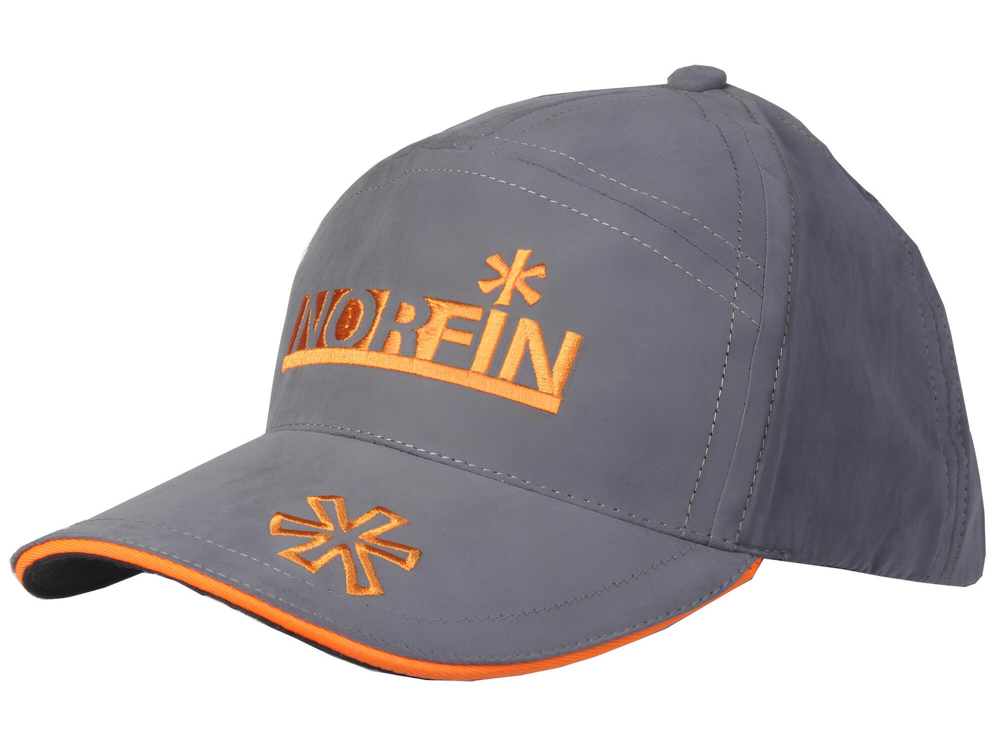 Лёгкая и быстросохнущая бейсболка Norfin серая из полиэстера. Регулируемая застежка. Фирменный логотип Norfin вышит контрастными нитками.