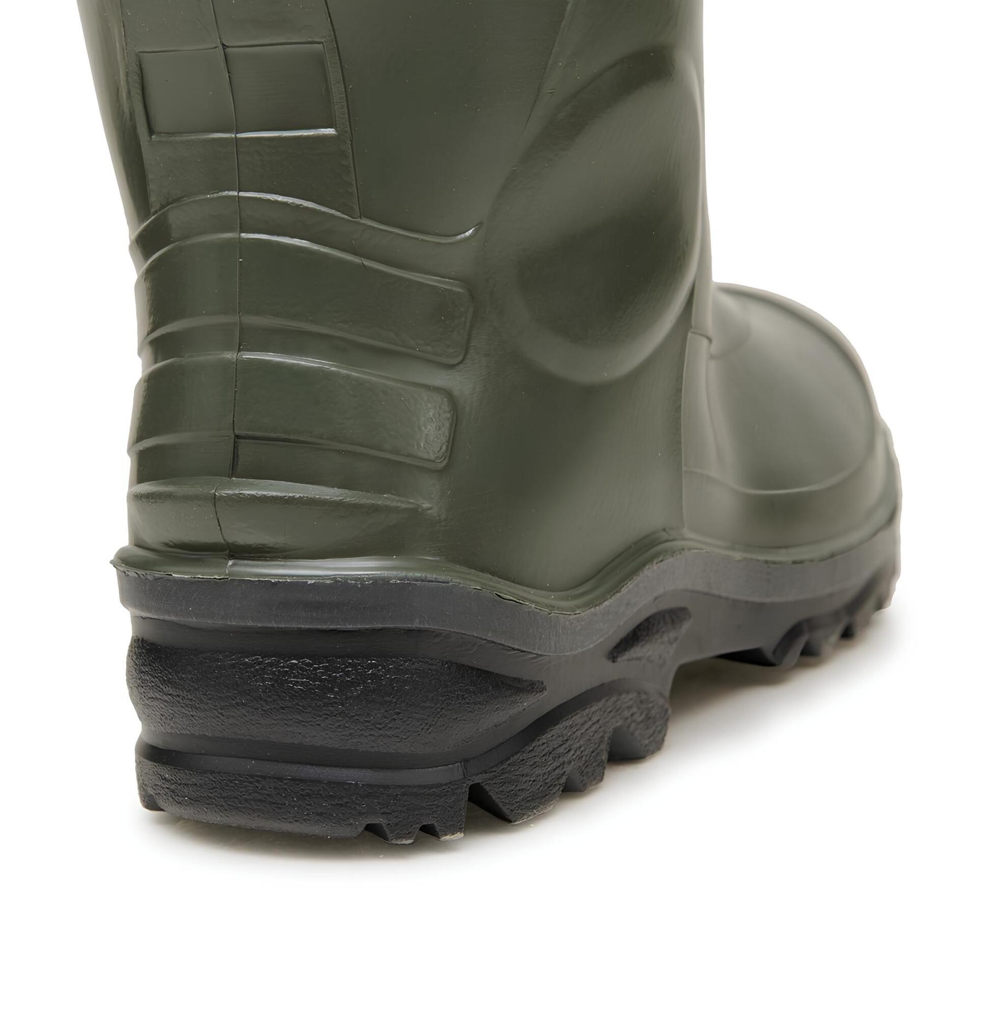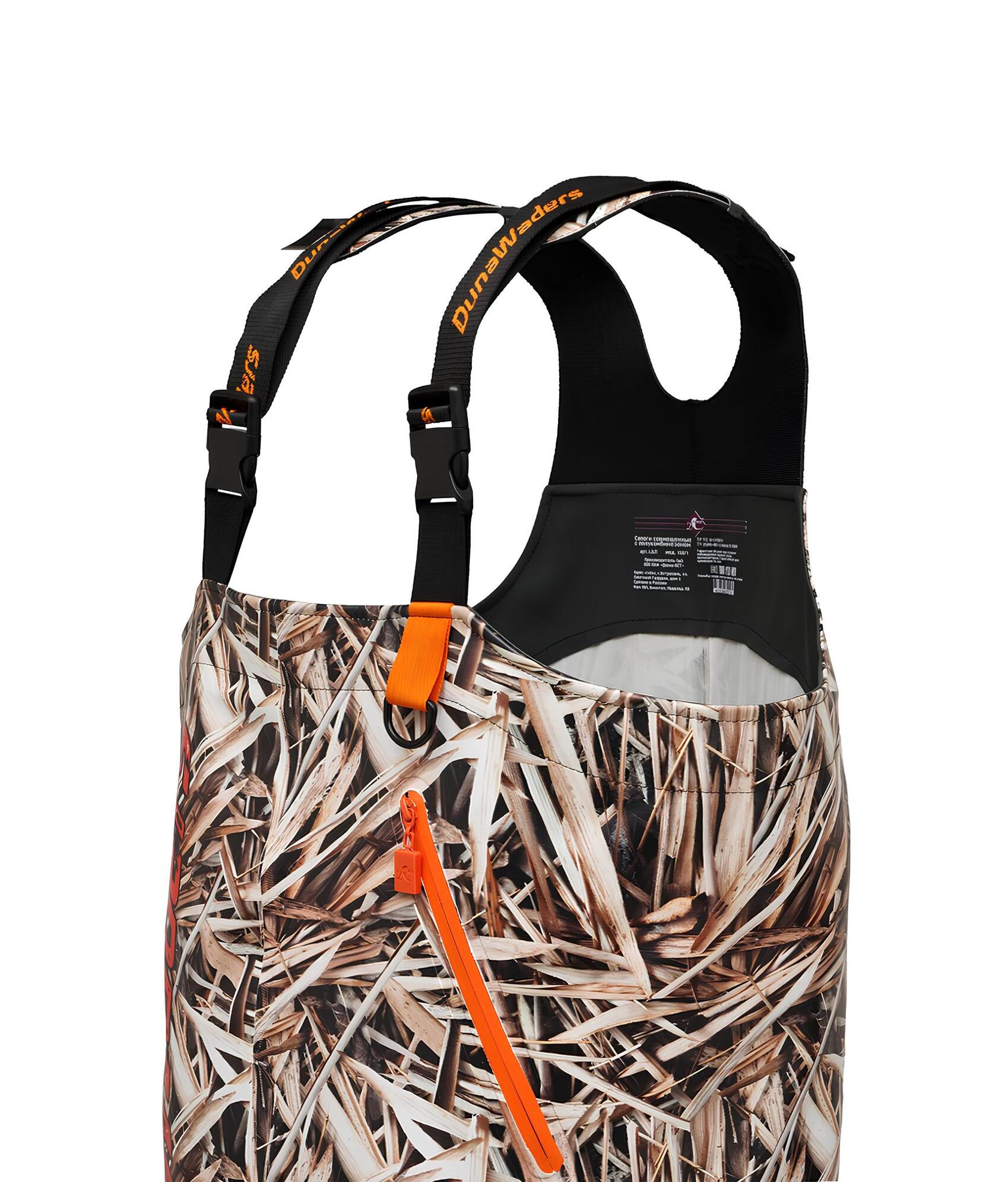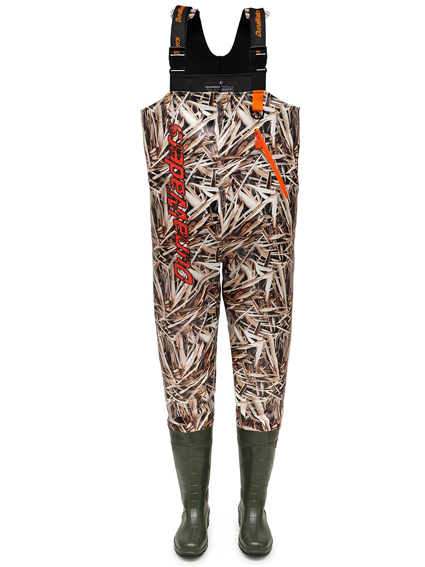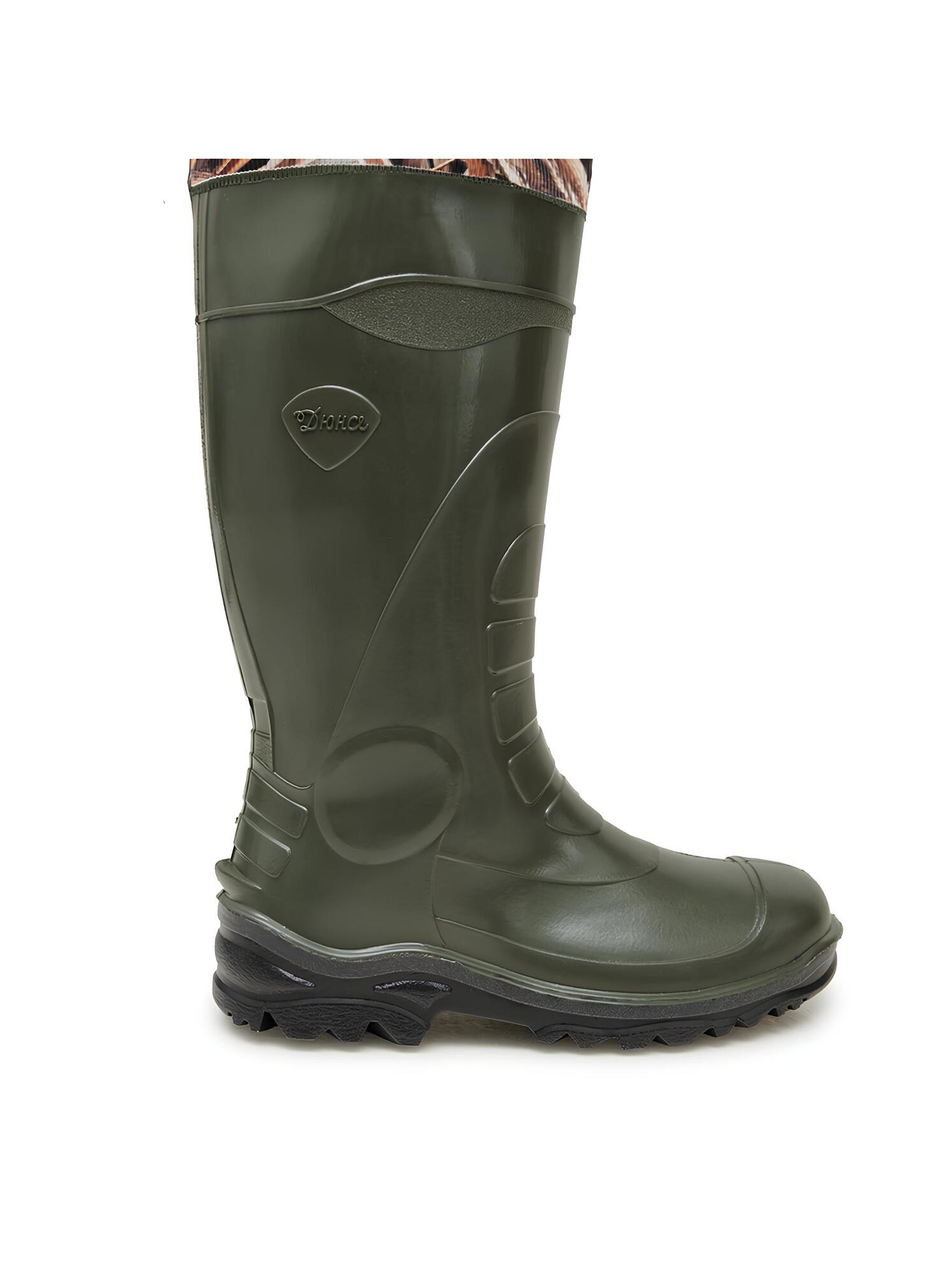 Рыбацкие полукомбинезоны изготовлены на основе мужских сапог из ПВХ DU-Elastic с использованием технологии трёхкомпонентного литья. Благодаря промежуточному слою подошвы из вспененного ПВХ, обувь обеспечивает отличную амортизацию и теплоизоляцию, позволяя рыбачить в воде дольше. Специальный крой модели подходит для людей с полной фигурой, а эластичные резинки по бокам обеспечивают плотное прилегание.