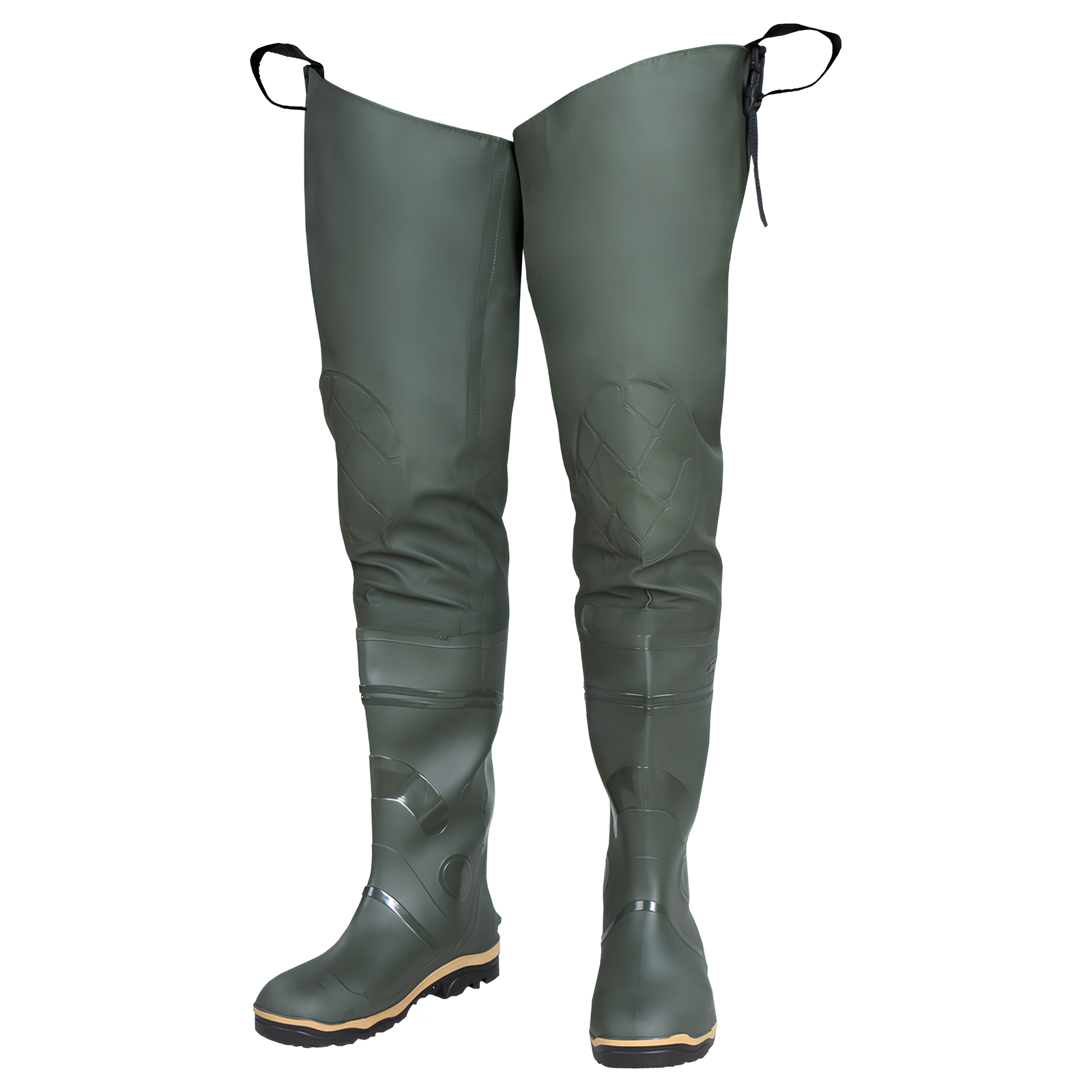 Сапоги для рыбаков выполнены из пластиката и винитола. Нижняя часть являться крепкими рабочими высокими сапогами, изготовленным методом трёхкомпонентного литья.