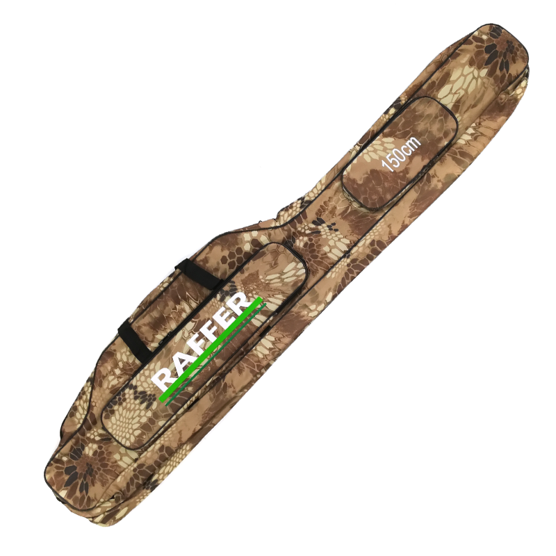 Классический чехол для удилищ Raffer FPC-1602-150 (150 см.). Чехол имеет три объемных отсека для удилищ, а также объемный кофр, который позволяет не снимать катушки во время транспортировки.