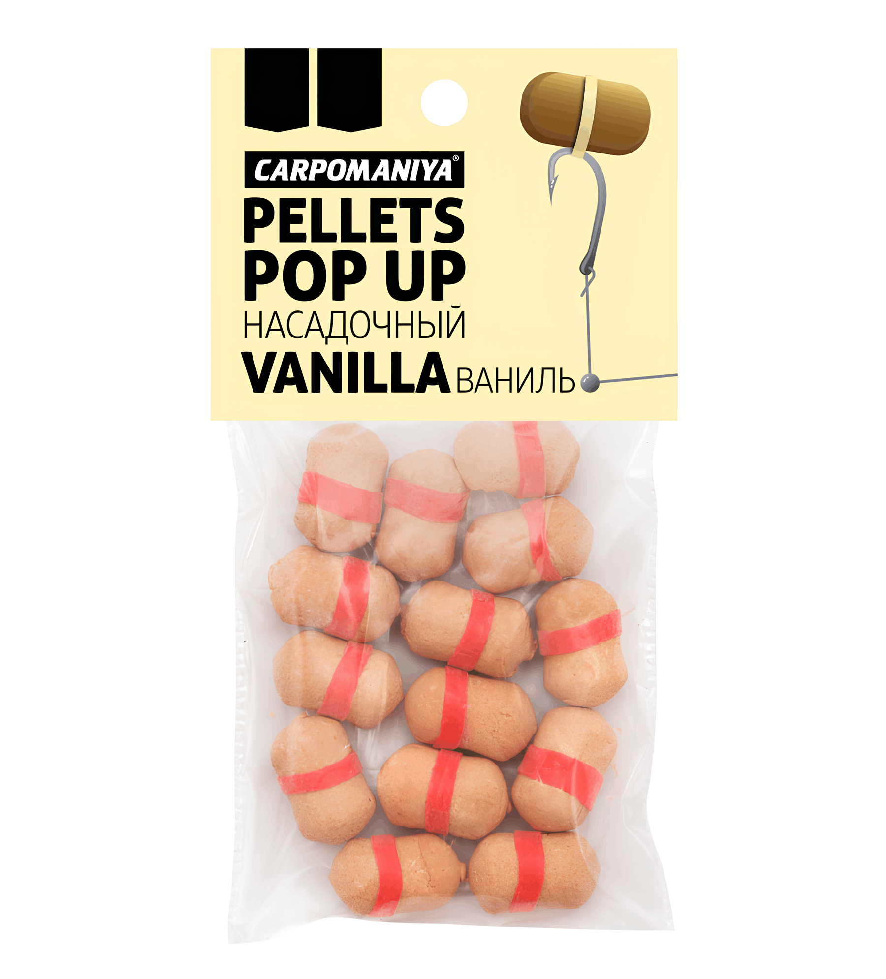Плавающий насадочный пеллетс в пакете, по 12-15 штук, диаметром 8-10 мм. Легко надевается на крючок с помощью силиконовых кембриков, которые идут в комплекте. Растворяется в воде примерно за 5 часов.