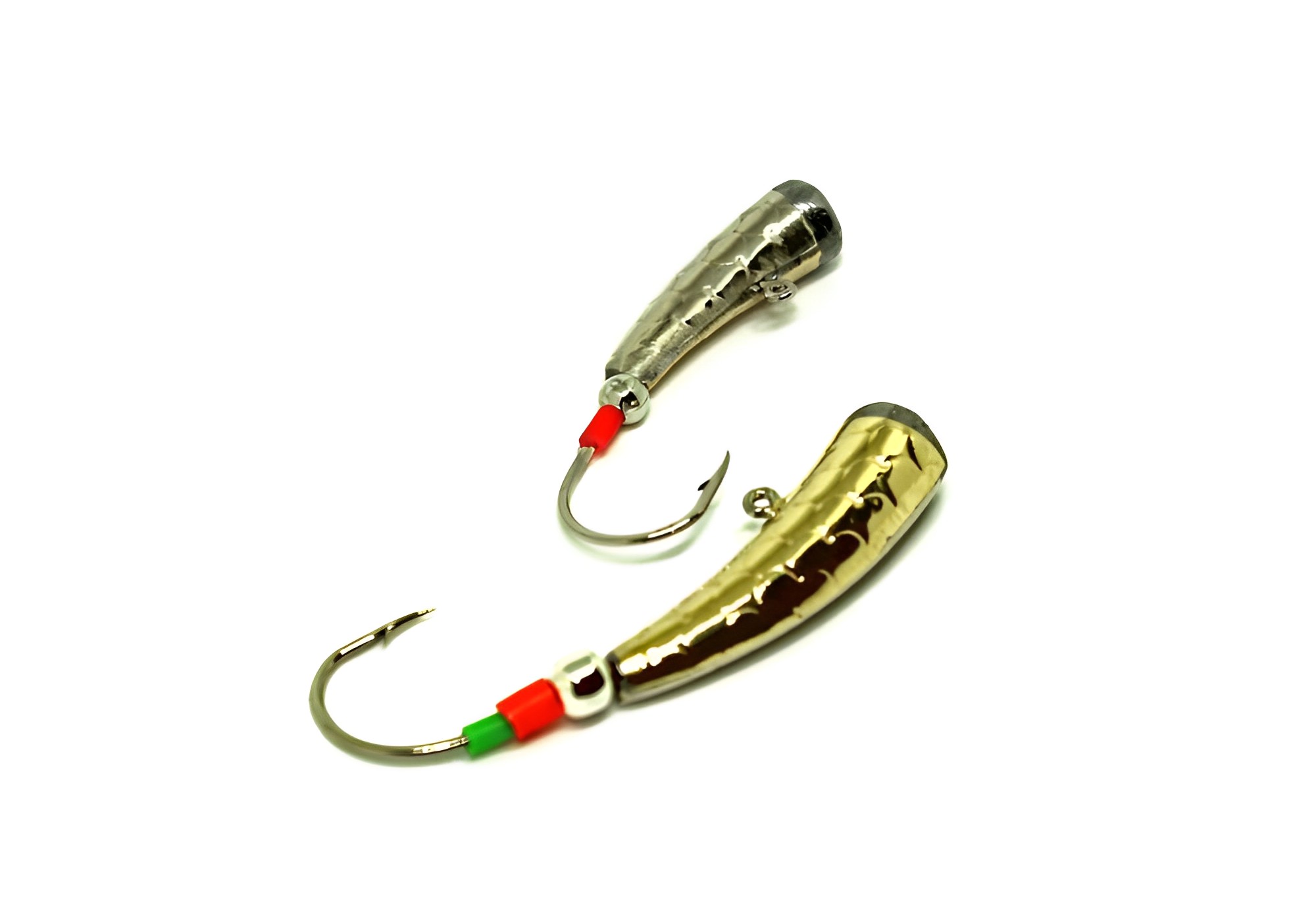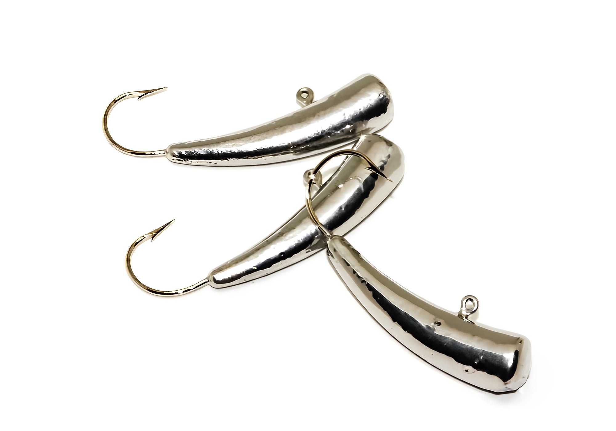 Классическая приманка, по народному «стукалка» или «кривой клык». По игре более активная, чем простой конус, т.к. кроме горизонтальных движений в толще воды, подобно балансиру, совершает еще и вертикальные колебания крючком. Прекрасно ловит судака, налима, берша зимой с подсадкой тюльки. Когда клев «вялый», судак неплохо ловится на «Кривулю» с подсадкой червя или малька.