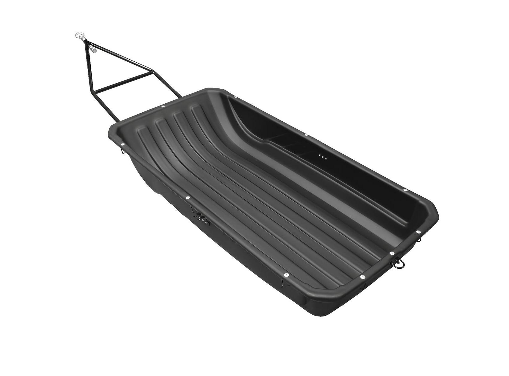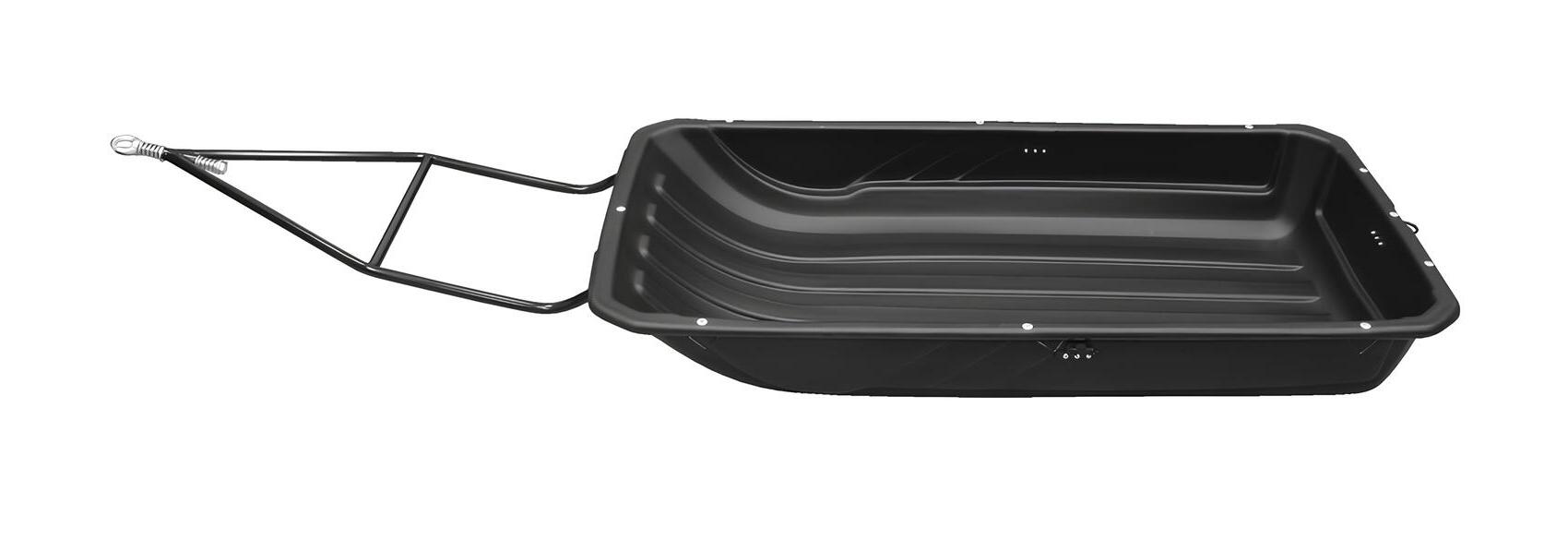 Сани-волокуши изготовлены методом вакуумного формования из ударопрочного морозостойкого пластика, режим эксплуатации до -60°C. Обвязка изготовлена из металла с усиленным демпферным креплением. Крышка крепится при помощи резиновых креплений. Существуют различные варианты комплектации. Размер: 1450*700*250 (440 высота с крышой).