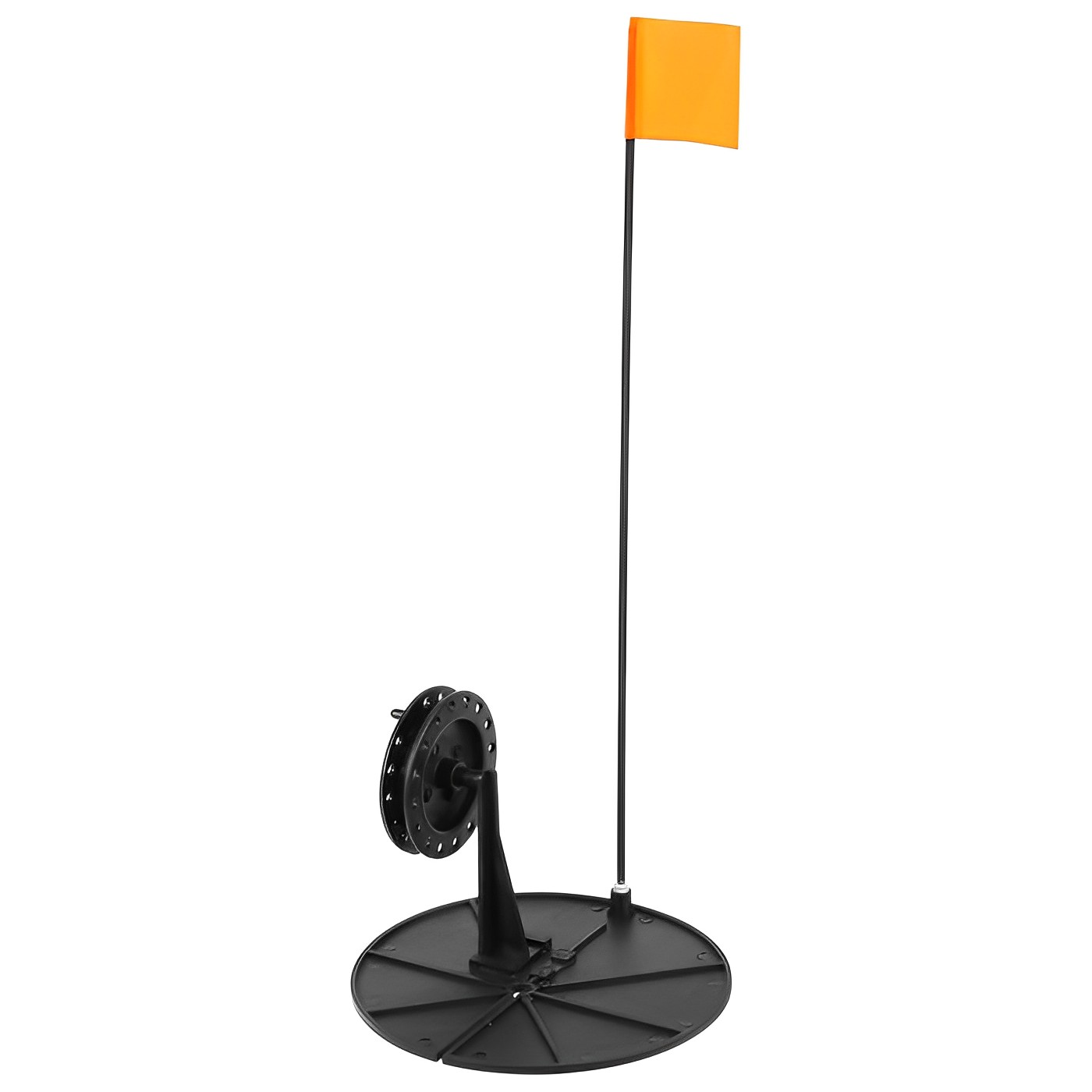 Жерлица для зимней рыбалки имеет 8-угольную платформу из морозоустойчивого пластика с прорезью для лески. Её форма позволяет затемнить и защитить лунку от замерзания.