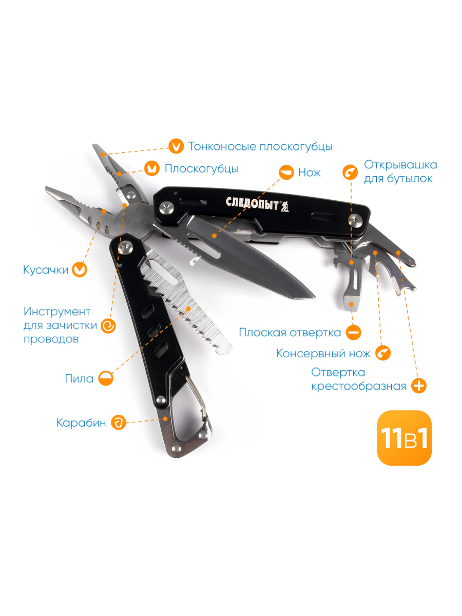 Мультитул «СЛЕДОПЫТ-EXPLORER» имеет все необходимые инструменты, которые могут понадобиться на отдыхе и в быту. Набор инструментов изготовлен из коррозионно-стойкой жаропрочной стали 420. Особая структура стали придает изделиям высокую твердость, лезвия хорошо точатся и устойчивы к повреждениям. Армированный чехол для крепления на поясном ремне сохранит мультитул в чистоте и защитит от неблагоприятного воздействия внешней среды. Мультитул «СЛЕДОПЫТ-EXPLORER» удобен в использовании, имеет высокое качество и стильный дизайн.