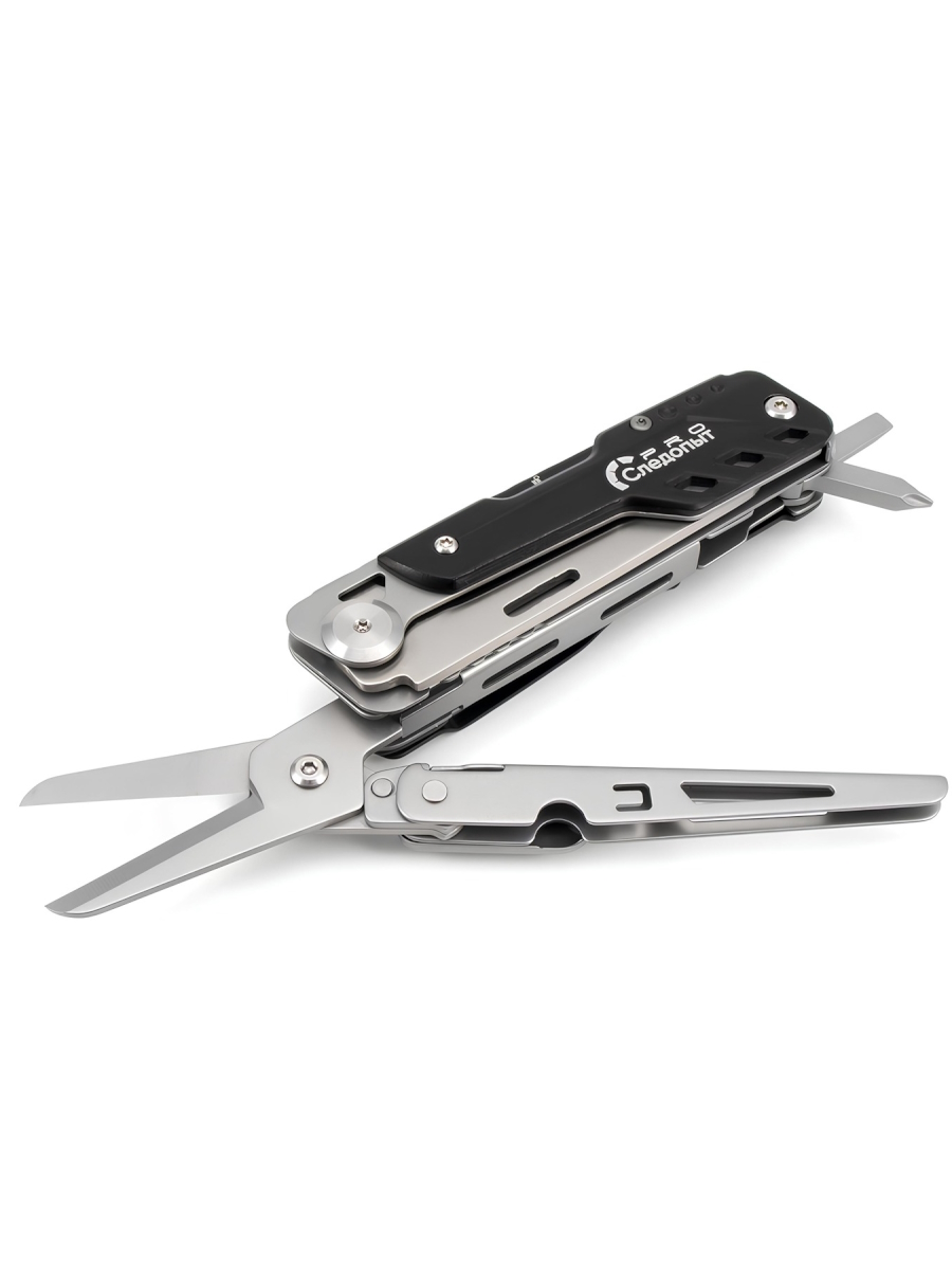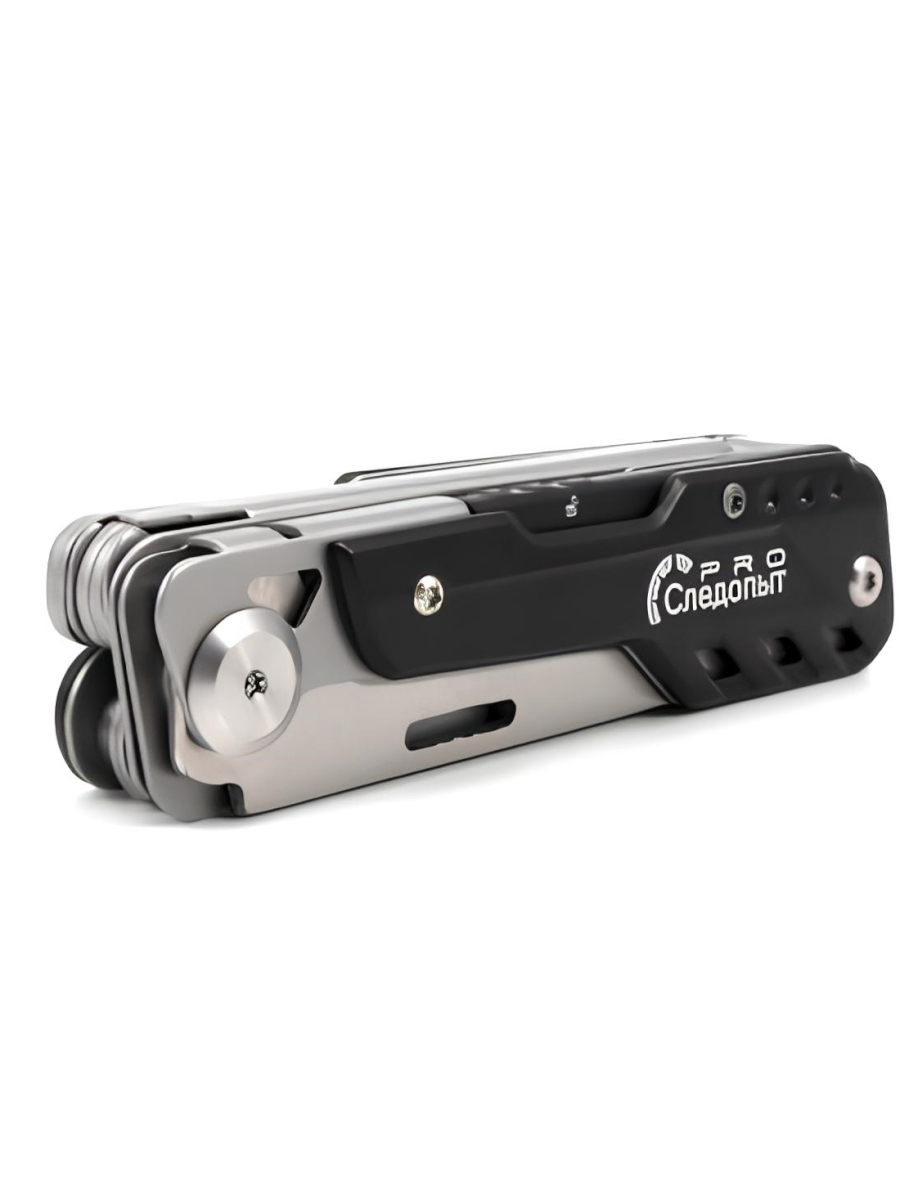 Мультитул «Следопыт» - набор из 6 предметов профильного или повседневного инструмента, заключенный в одном компактном корпусе. Мультитул делится на 2 части. Фиксаторы предотвращают самопроизвольное складывание инструментов. Оснащен зажимом для крепления на ремне. Мягкий чехол в комплекте.