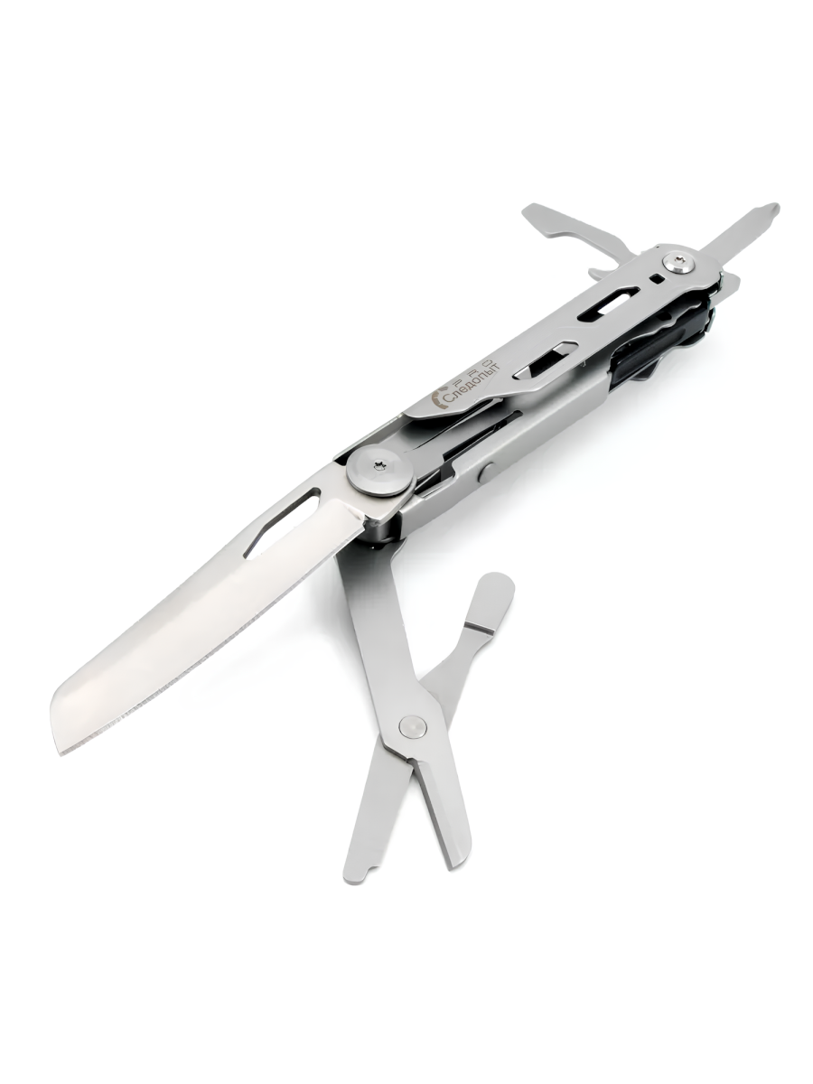Мультитул «СЛЕДОПЫТ Pro» - набор из 7 предметов профильного или повседневного инструмента, заключенный в одном компактном корпусе. Имеет фиксаторы, которые предотвращают самопроизвольное складывание инструментов. Оснащен зажимом для крепления на ремне.