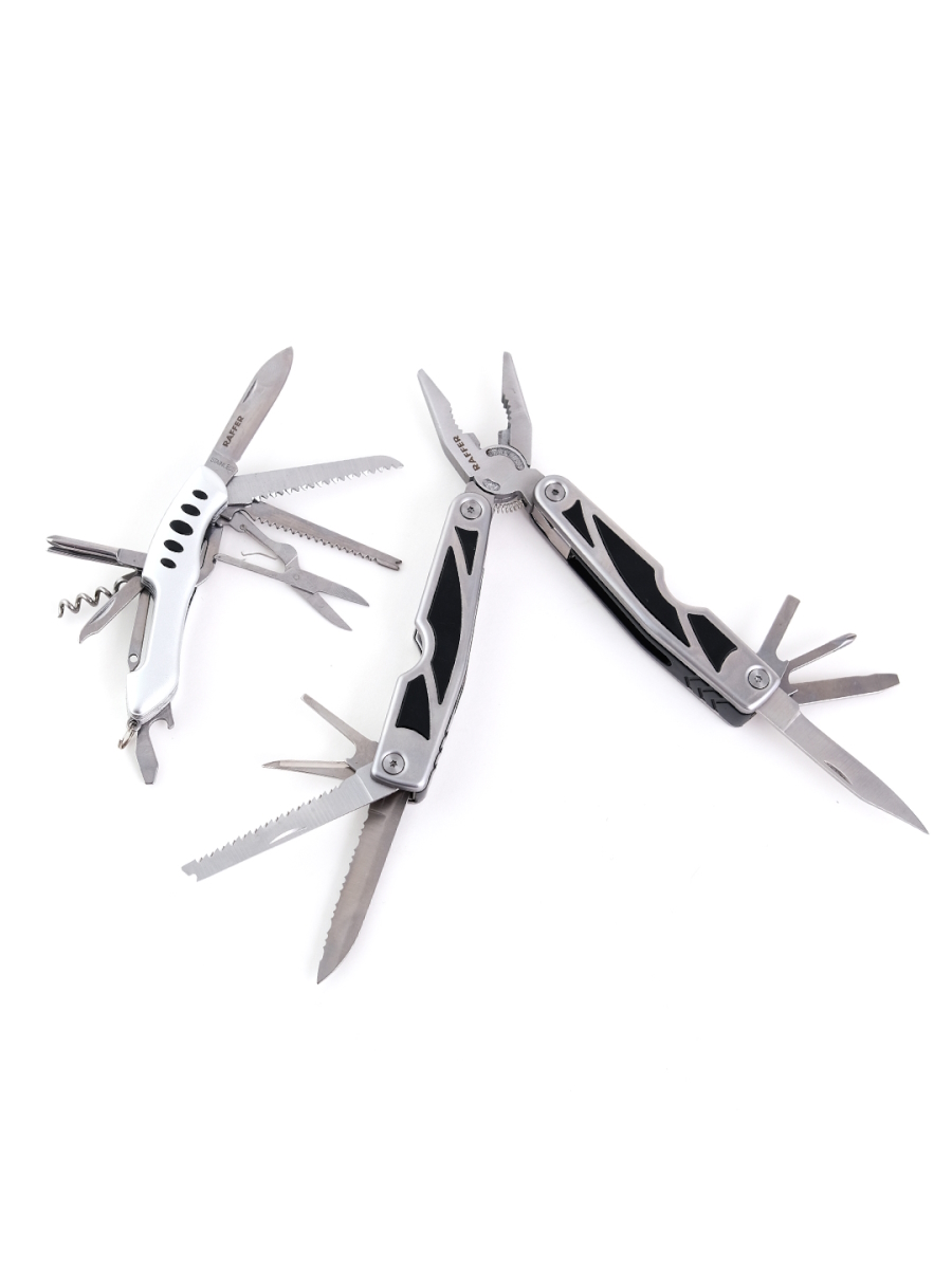 Мультифункциональный-Нож, входящий в комплект, имеет 11 инструментов, а длина в сложенном виде не превышает 100 мм, так же оснащен острым лезвием, изготовленное из прочной стали 420S/S. Он отлично подходит для резки и других задач, требующихся в походе.