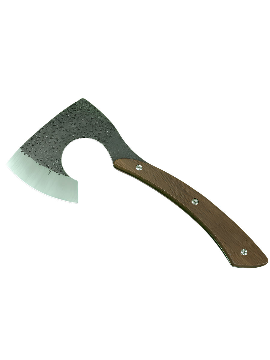 Лезвие топора выполнено из прочной углеродной стали 45, что обеспечивает отличные режущие свойства и высокую устойчивость к износу. Этот материал гарантирует надежность и долговечность даже в самых сложных условиях эксплуатации.