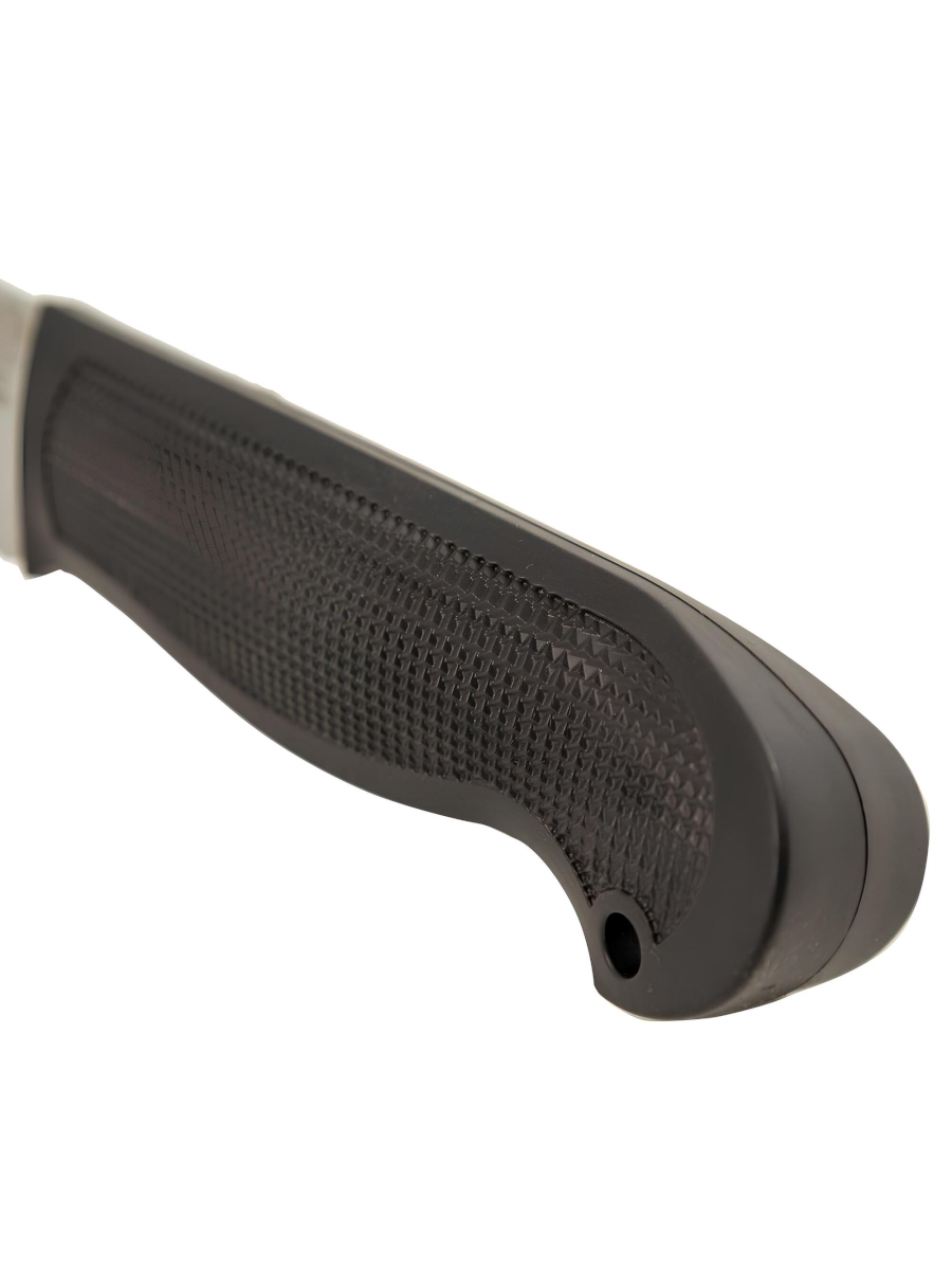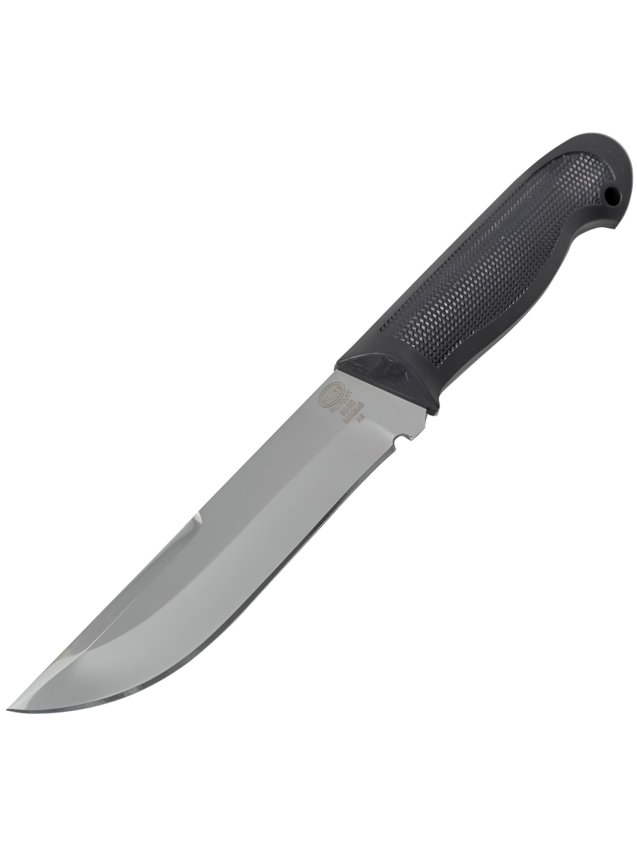 Нож охотничий и туристический Златоуст (ЗЗОСС) модель H86 - Небольшой универсальный, легкий и прочный нож классической формы с нешироким клинком, имеющим вогнутые линзовидные спуски, образующие тонкое, прекрасно режущее лезвие. Демонстрирует отличные режущие качества. Поэтому в умелых руках становится весьма серьезным инструментом. Клинок с толщиной обуха в 2,5 мм имеет узкие долы с обеих сторон, что придает ему дополнительную прочность. Классическая форма рукояти подкупает: она удобна даже для большой руки, уверенно и прочно ложится в любую ладонь. А оптимальной величины гарда не дает соскользнуть пальцам при резах от себя.