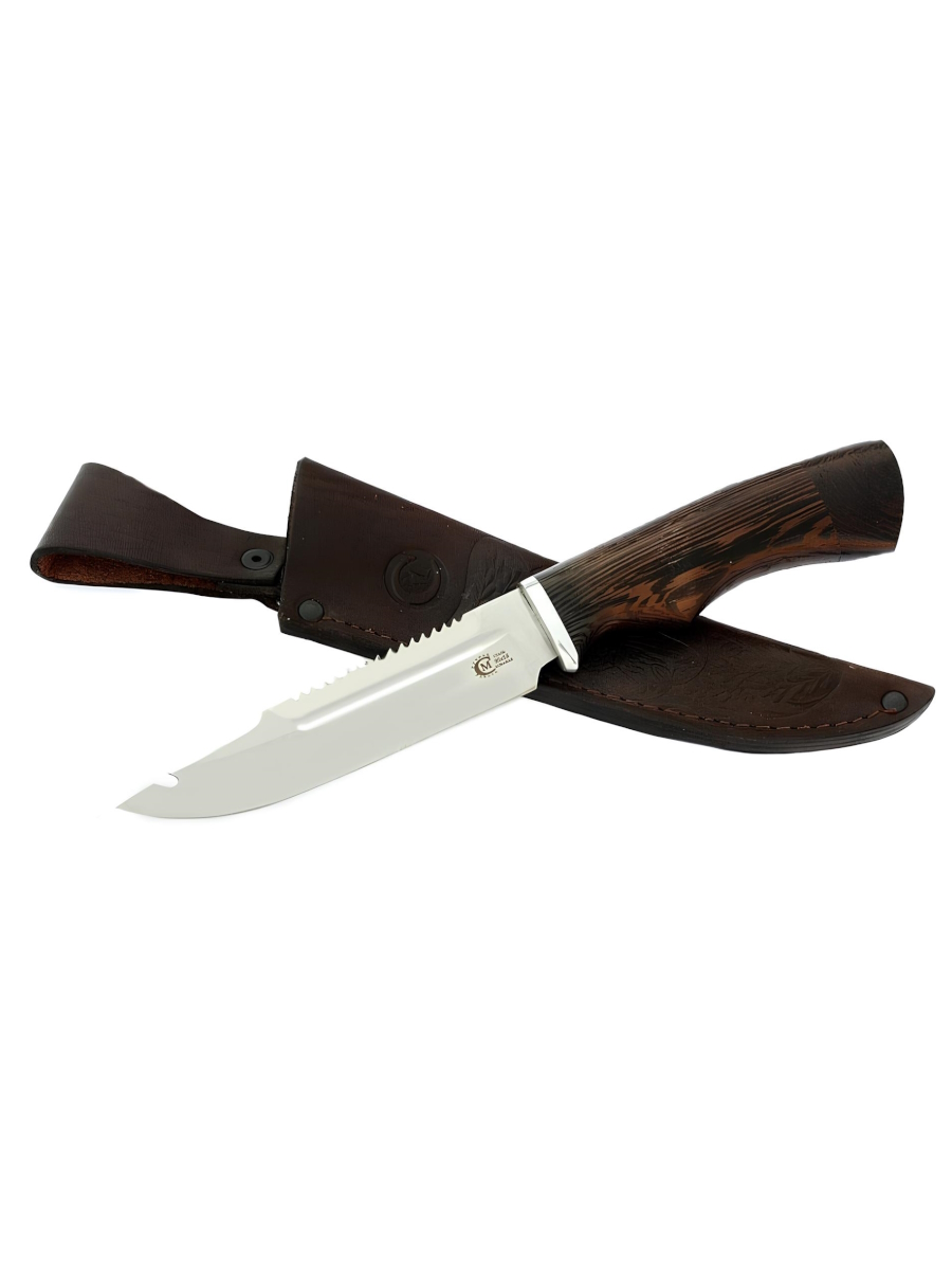 Нож Щука сделанный вручную мастерами кузницы Сёмина из города Ворсма, Нижегородской области. При изготовлении клинка использовалась кованная сталь 95х18, с твердостью которая составляет 57 - 60 HRC (Чем выше показатель, тем надежнее и долговечнее нож). При производстве рукоятки используется литье, венге.
