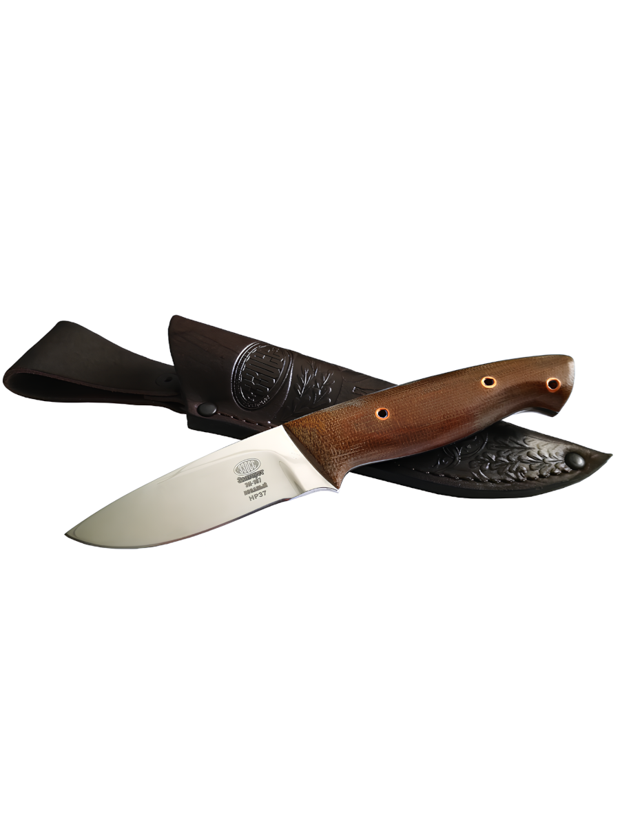 Клинок ножа "НР37" каплевидной формы способен хорошо резать и прокалывать материал. Накладная рукоять обеспечивает повышенную прочность ножа, а сама форма обеспечивает удобный хват.