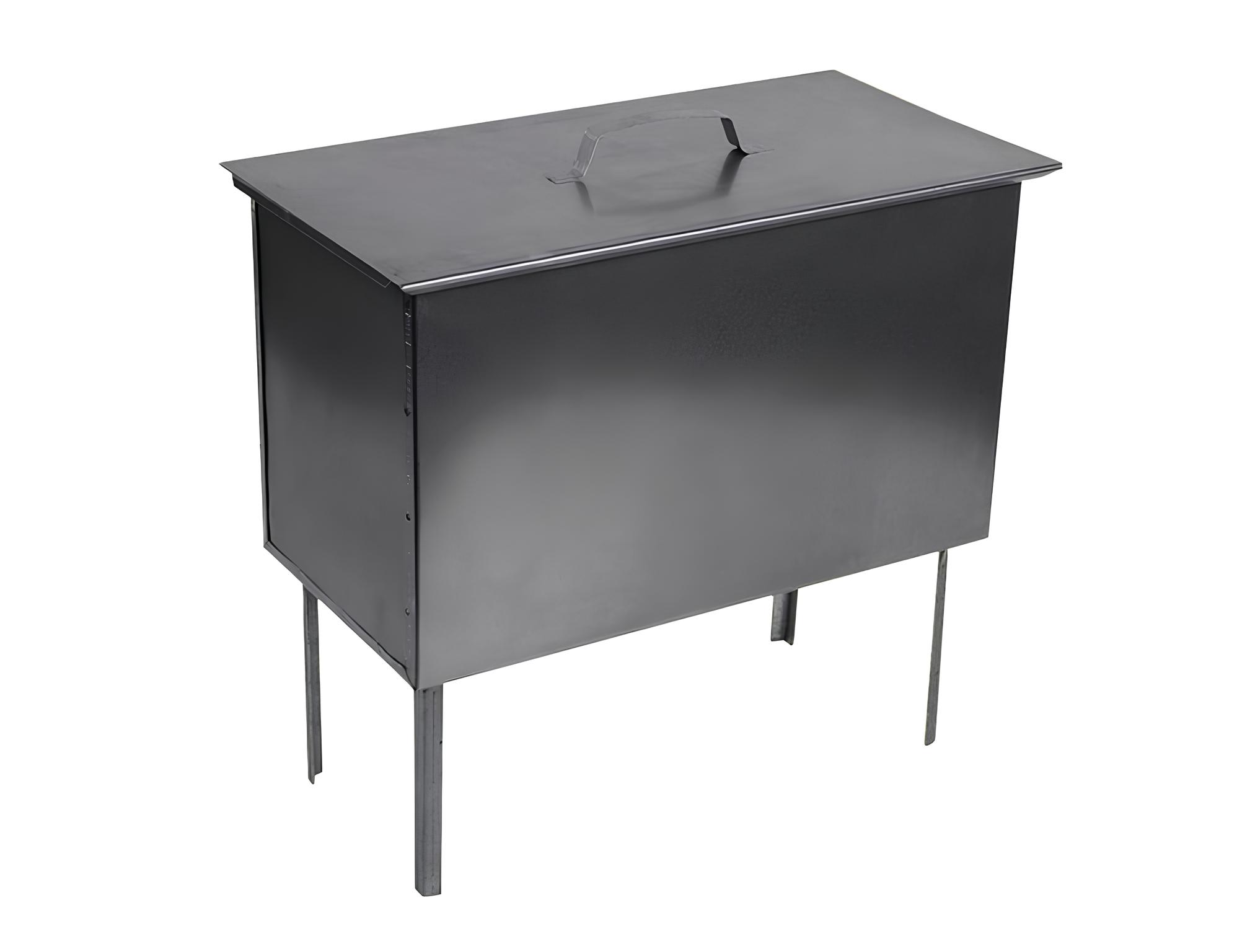 Наличие ножек позволяет установить коптильню на нужной высоте и обеспечивает хорошее циркулирование воздуха внутри, что помогает равномерному копчению продуктов.