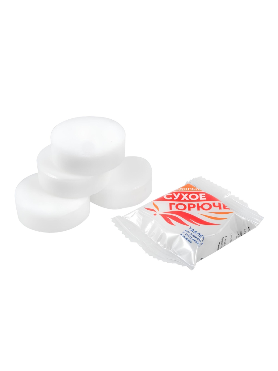 Каждое изделие поставляется в индивидуальной упаковке. Состав сухого горючего: уротропин технический.