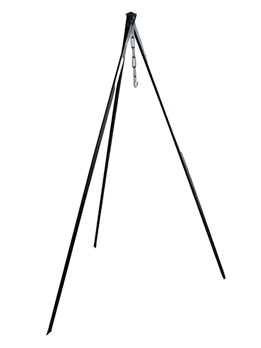Тренога для костра изготовлена из профильных труб. Общая высота - 80 см. Оснащена регулируемой цепью с крючком для котелка. Легко складывается, в сложенном виде очень компактна.